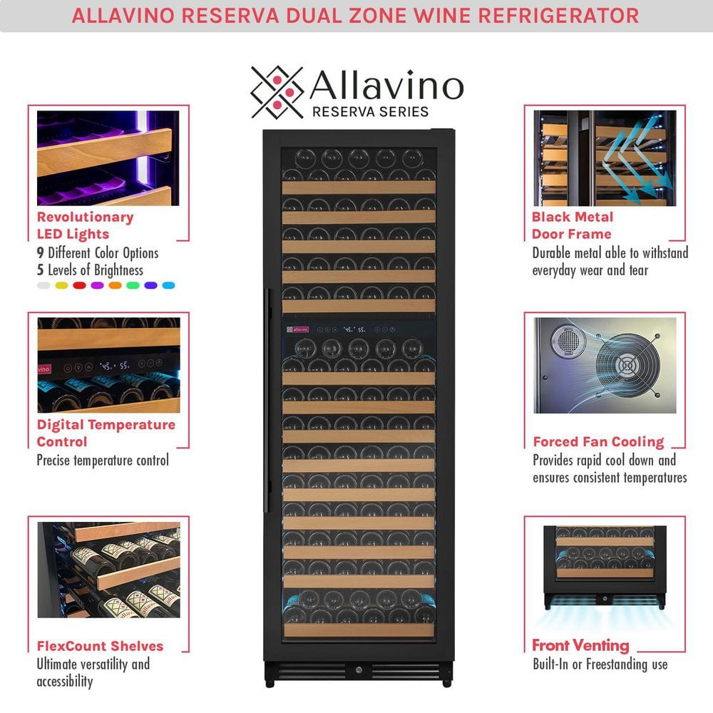 Allavino Reserva Series Digital 172-Bottle Dual Zone Wine Cooler in Black Metal with Right Hinge