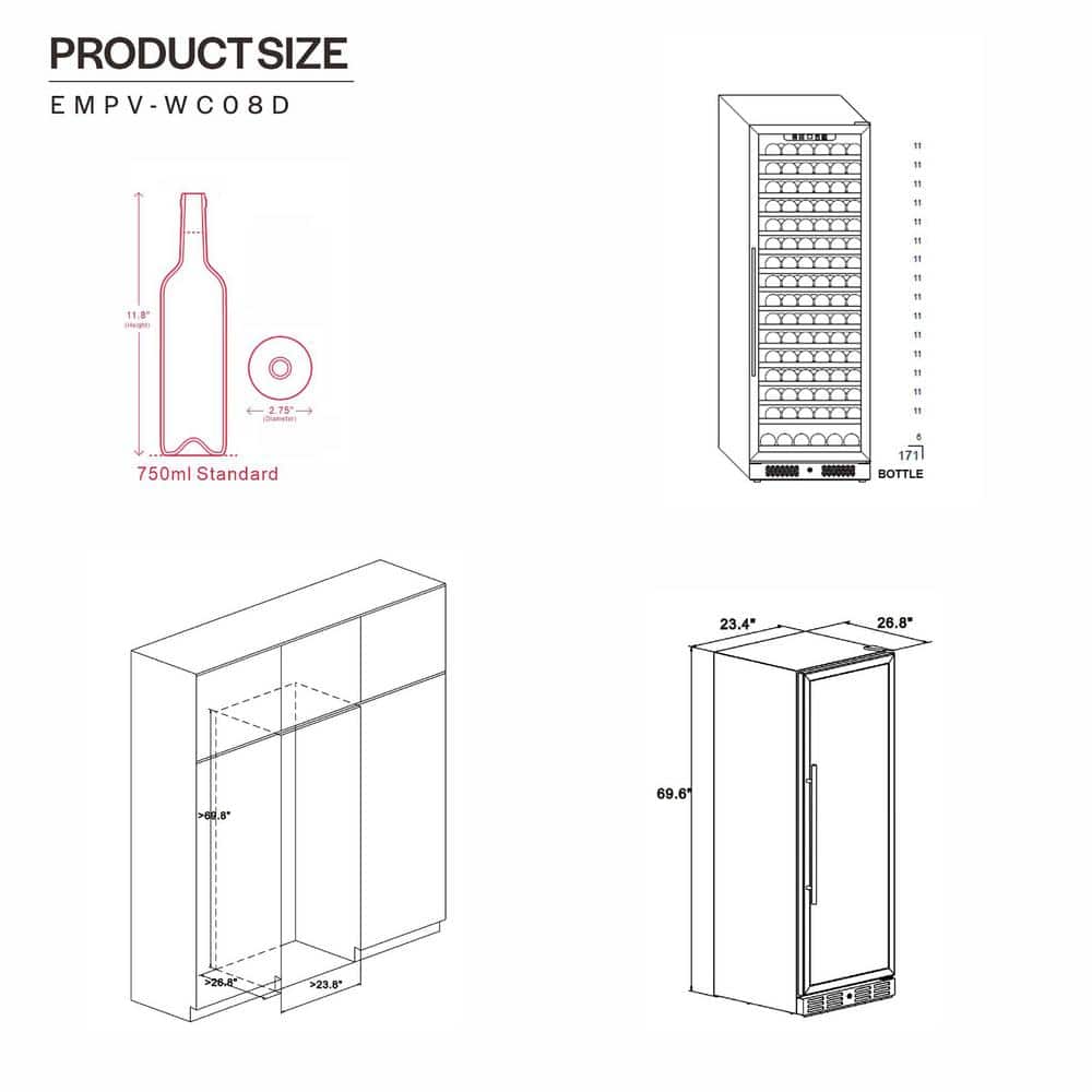 Empava 24 in. Dual Zone 160-Bottle Free Standing Wine Cooler in Stainless Steel