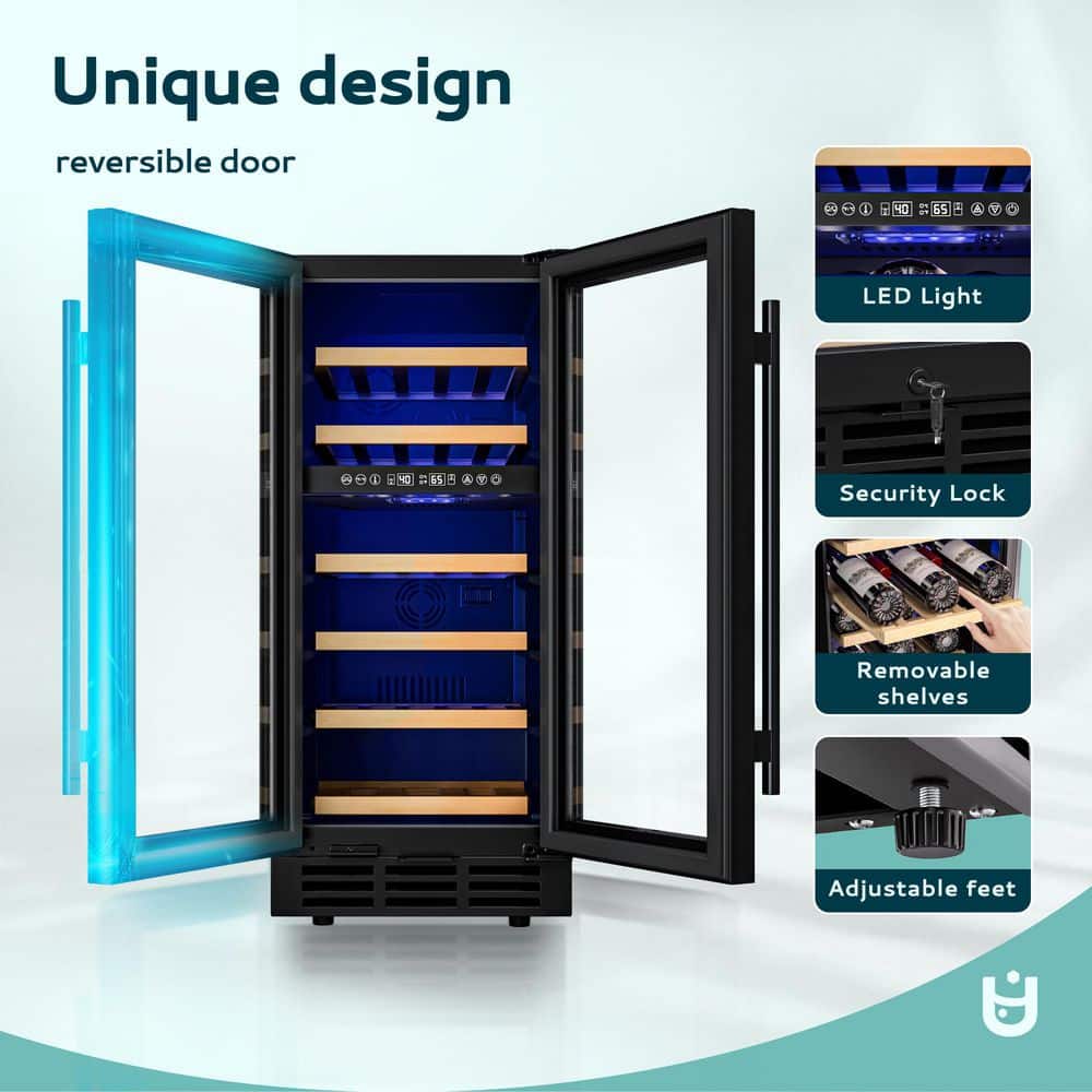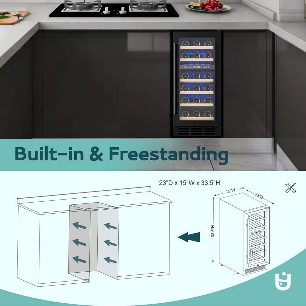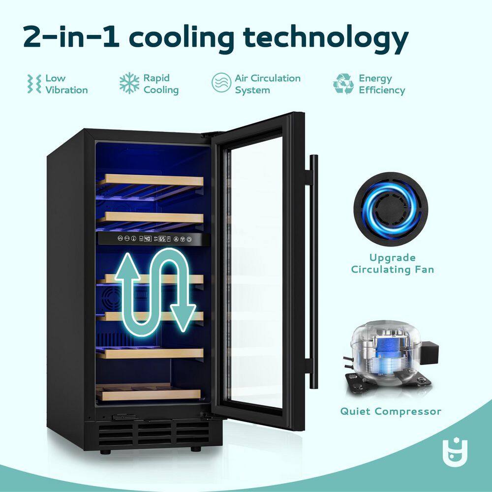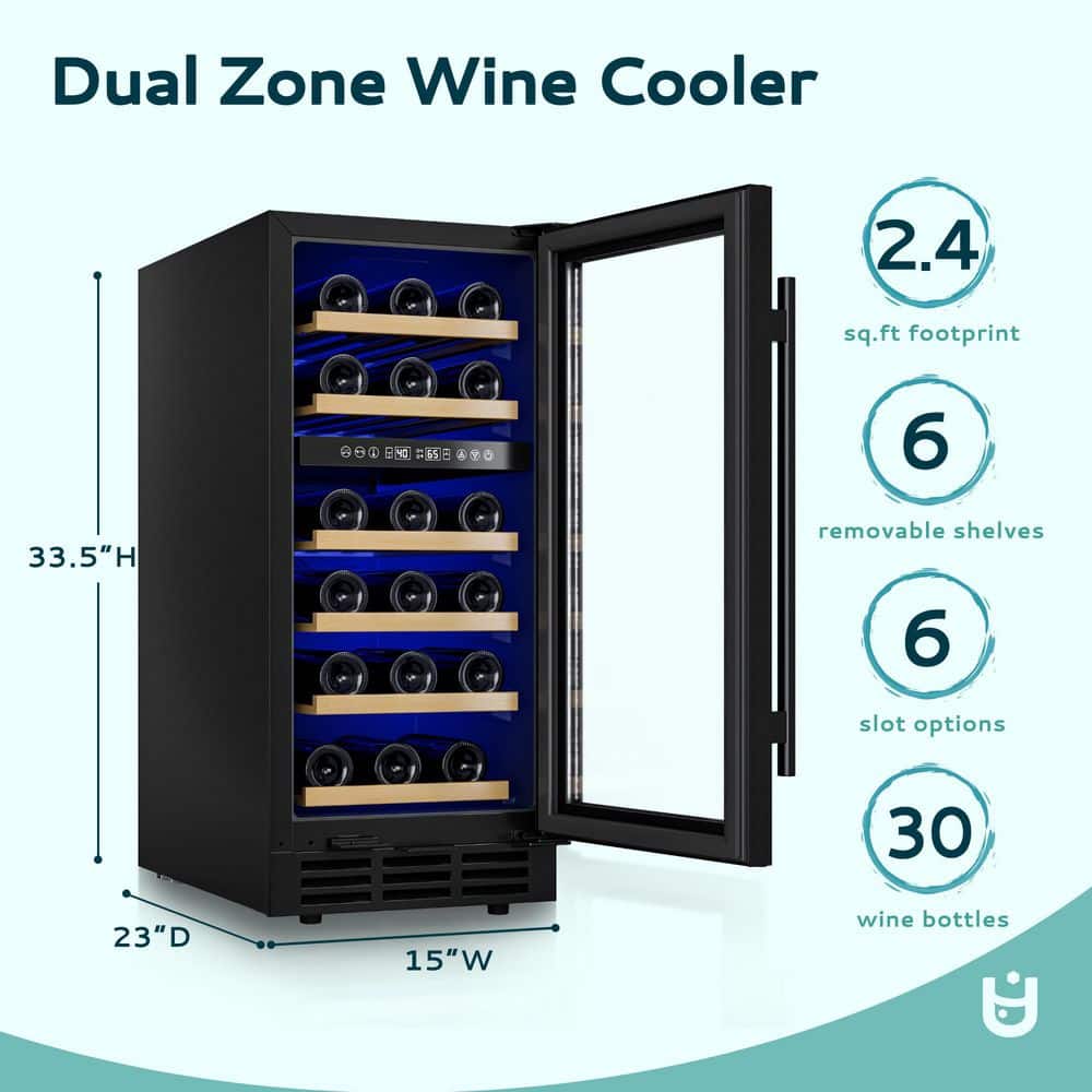 EUHOMY 15 in. Dual Zone 30-Bottle Undercounter/ Freestanding Wine Cooler in Black