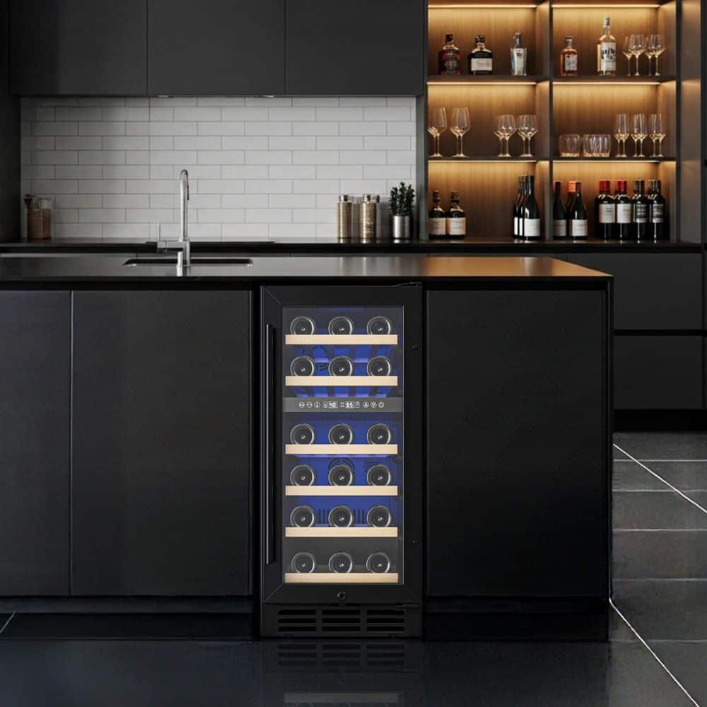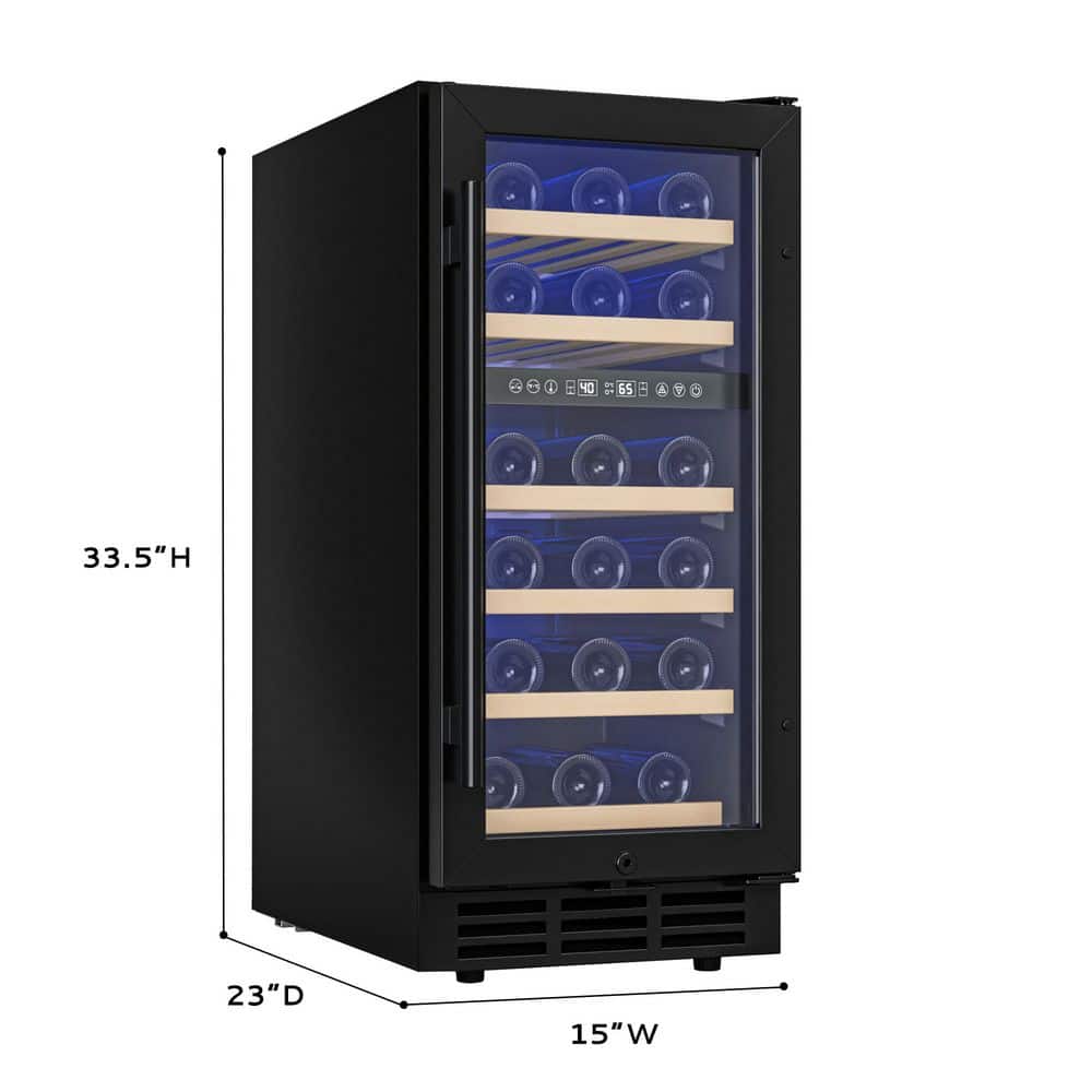 EUHOMY 15 in. Dual Zone 30-Bottle Undercounter/ Freestanding Wine Cooler in Black with Reversible Door, Removable Shelves