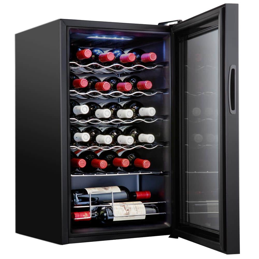 Ivation Single Zone 24-Bottle Freestanding Wine Cooler Refrigerator with Lock in Black