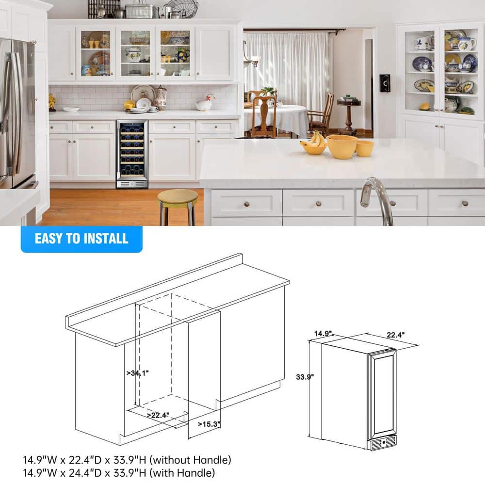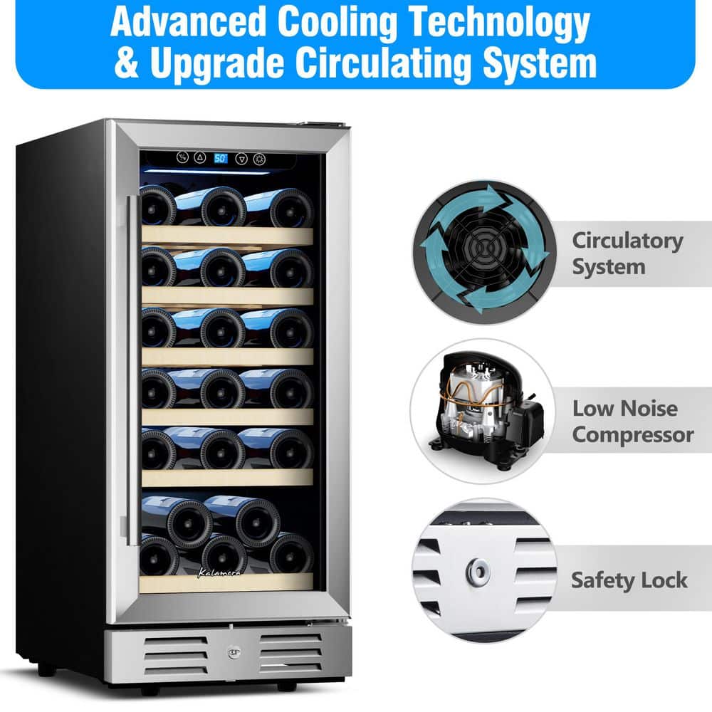 Kalamera 15 in. Built-In 30-Bottle Single Zone Wine Cooler Compressor