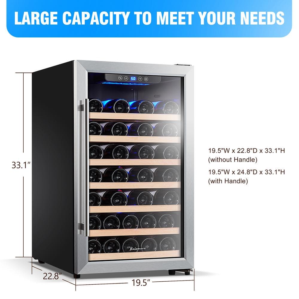 Kalamera 50 Bottle Compressor Wine Refrigerator Single Zone with Touch Control