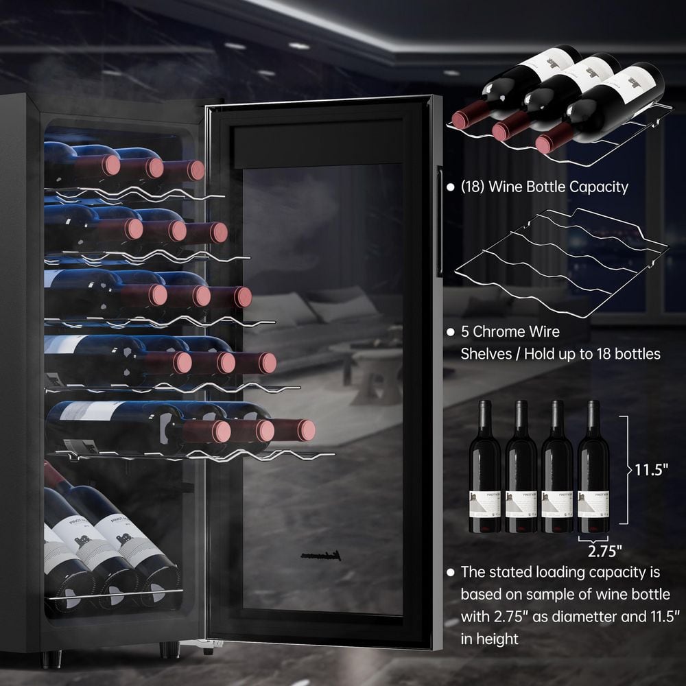 - Compact storage capacity holds up to 18 wine bottles