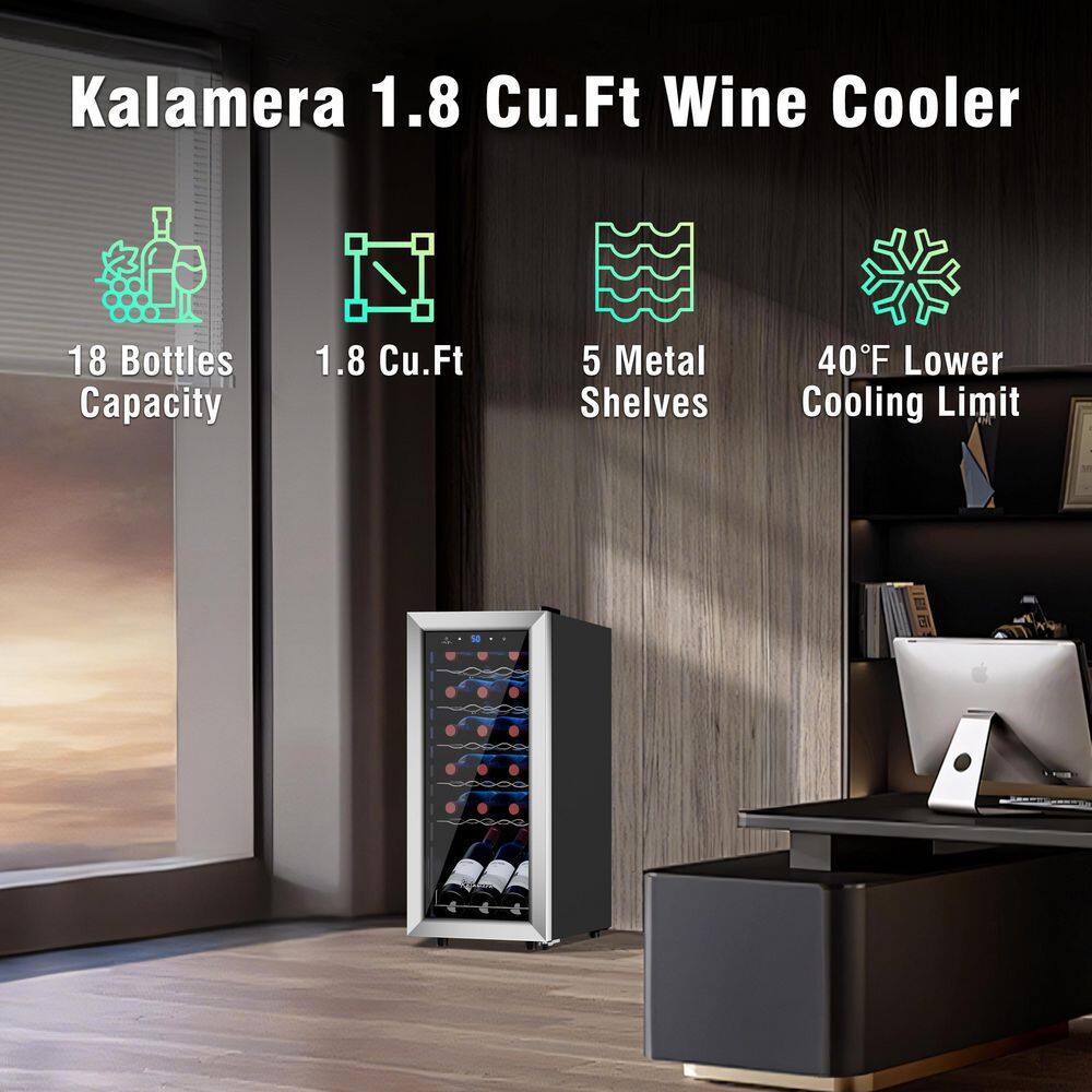 Kalamera Single Zone 18-Bottle Free Standing Compressor Wine Cooler with Glass Door