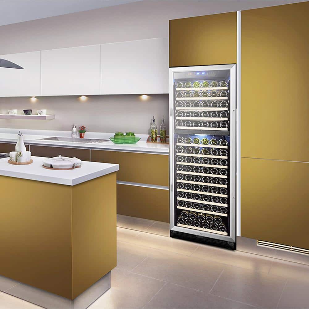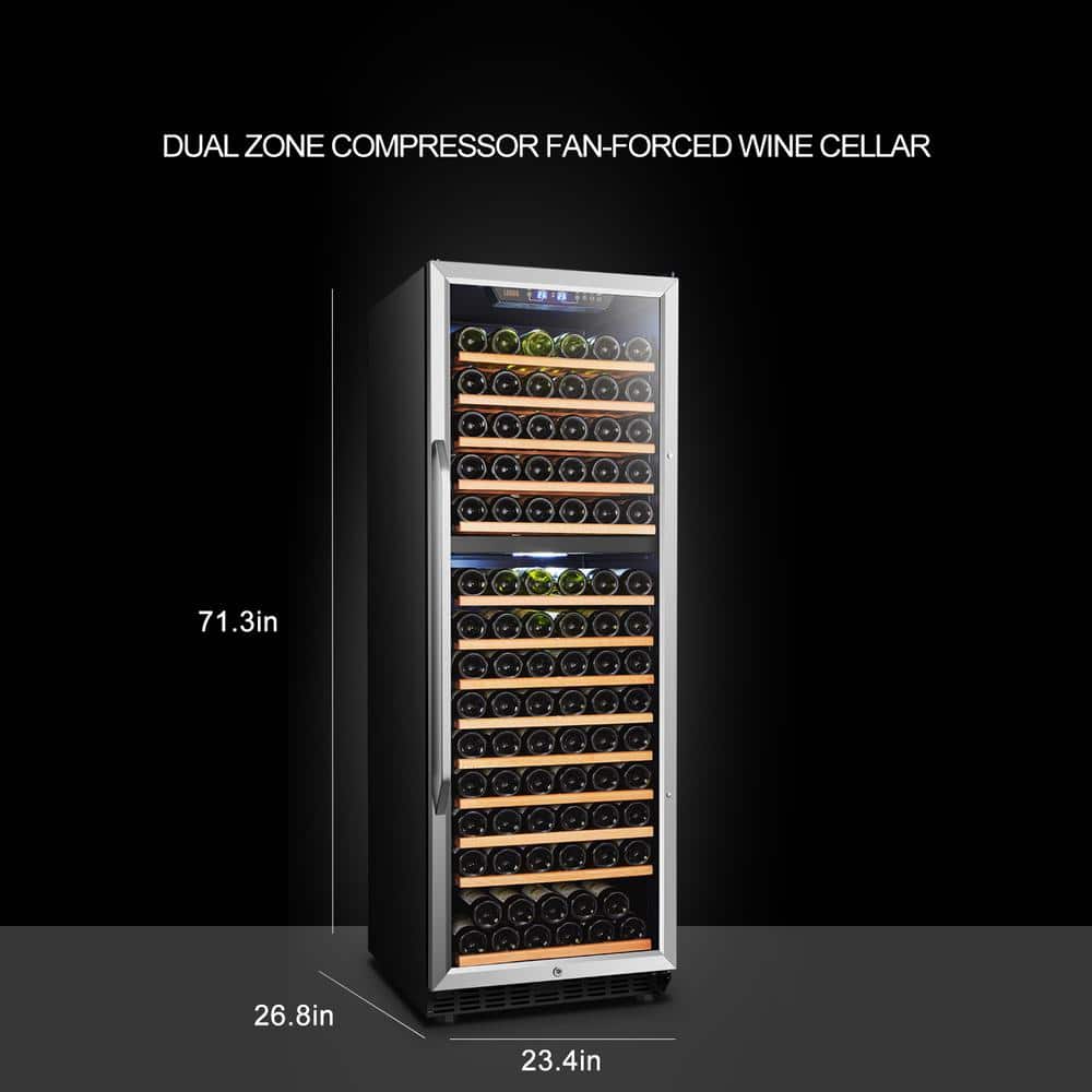 LANBO 23 in. 160-Bottle Stainless Steel Dual Zone Wine Refrigerator