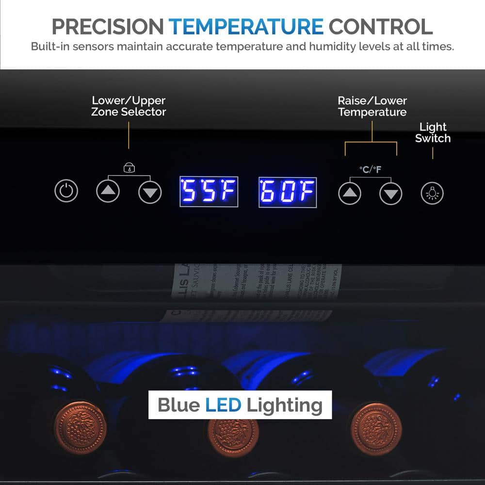 - Get two wine coolers in one with dual-zone cooling for 28 bottles