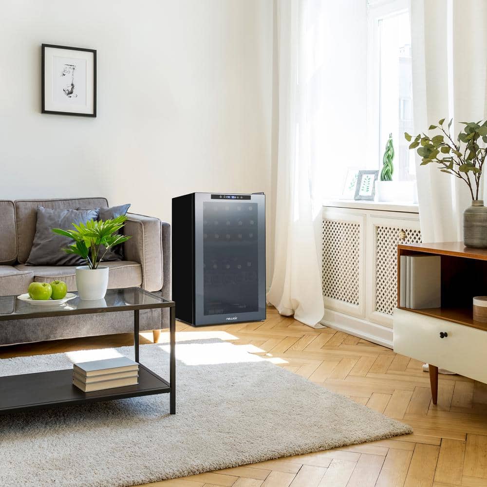 After a long day, there's nothing better than the company of good friends, good food, and a great glass of wine. The NewAir Shadow series 33-bottle wine fridge lets you enjoy the finer things in life and looks great doing it. The sleek, updated design features a mirrored glass door that blends perfectly into your decor while resisting smudges and fingerprints. The double pane glass blocks harmful UV rays to protect your wine's flavor and aroma. The durable control panel is built right into the glass, allowing you to select the perfect temperature with ease. It's never been easier or more stylish to serve up your favorite vintage.