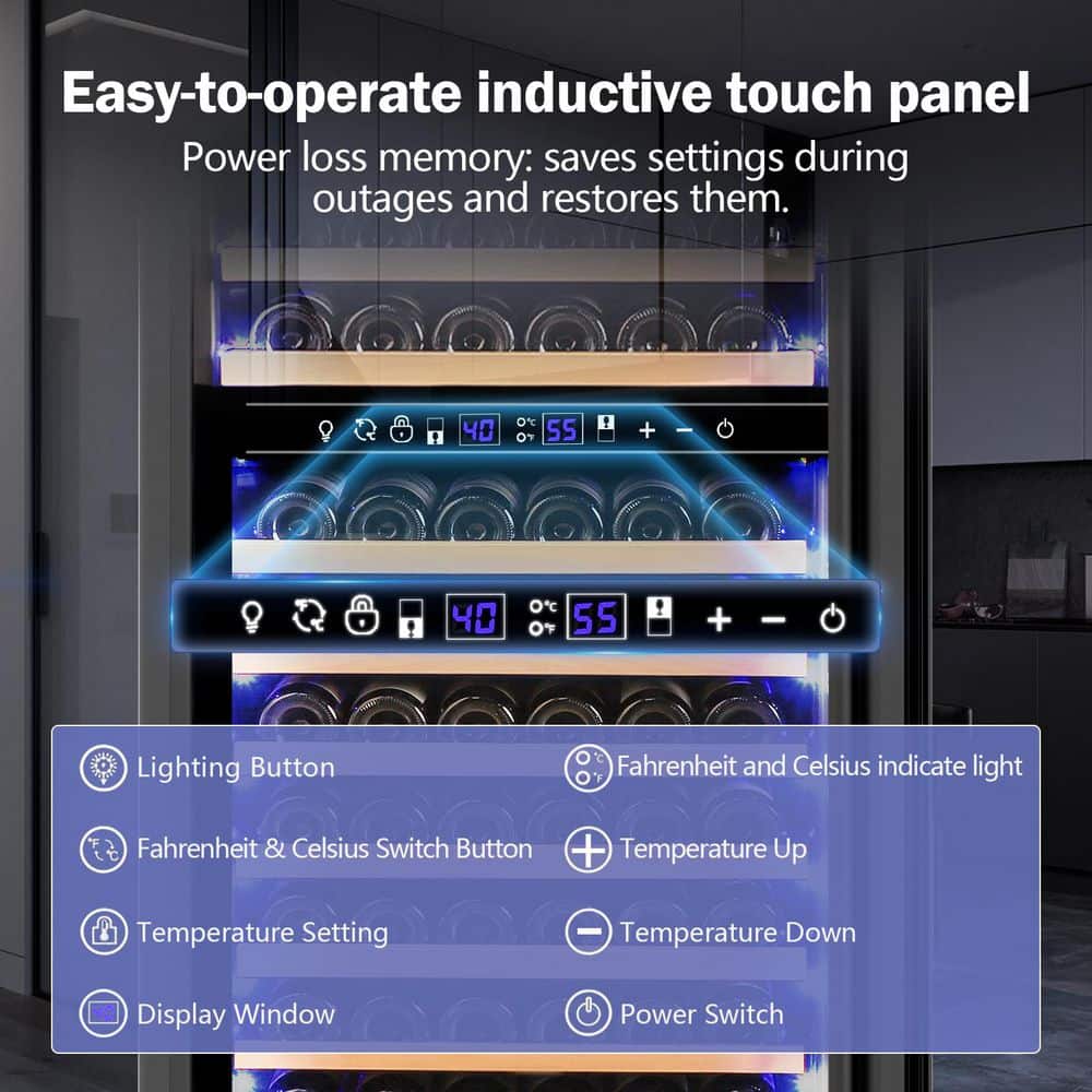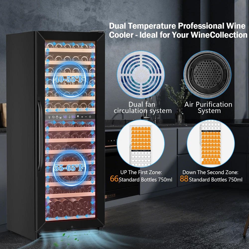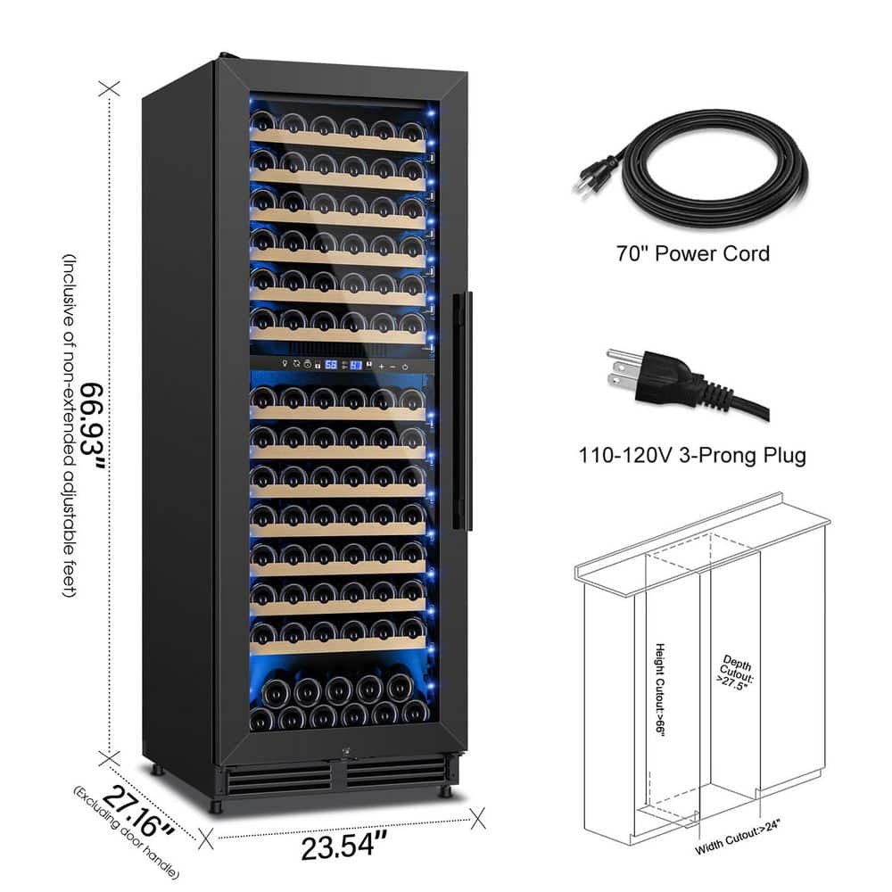 Nipus 23.5 in. Dual Zone Wine Cellar Cooling Unit 154+ Bottles Built in Wine Cooler Reversible Door Hinge Blue LEDs in Black