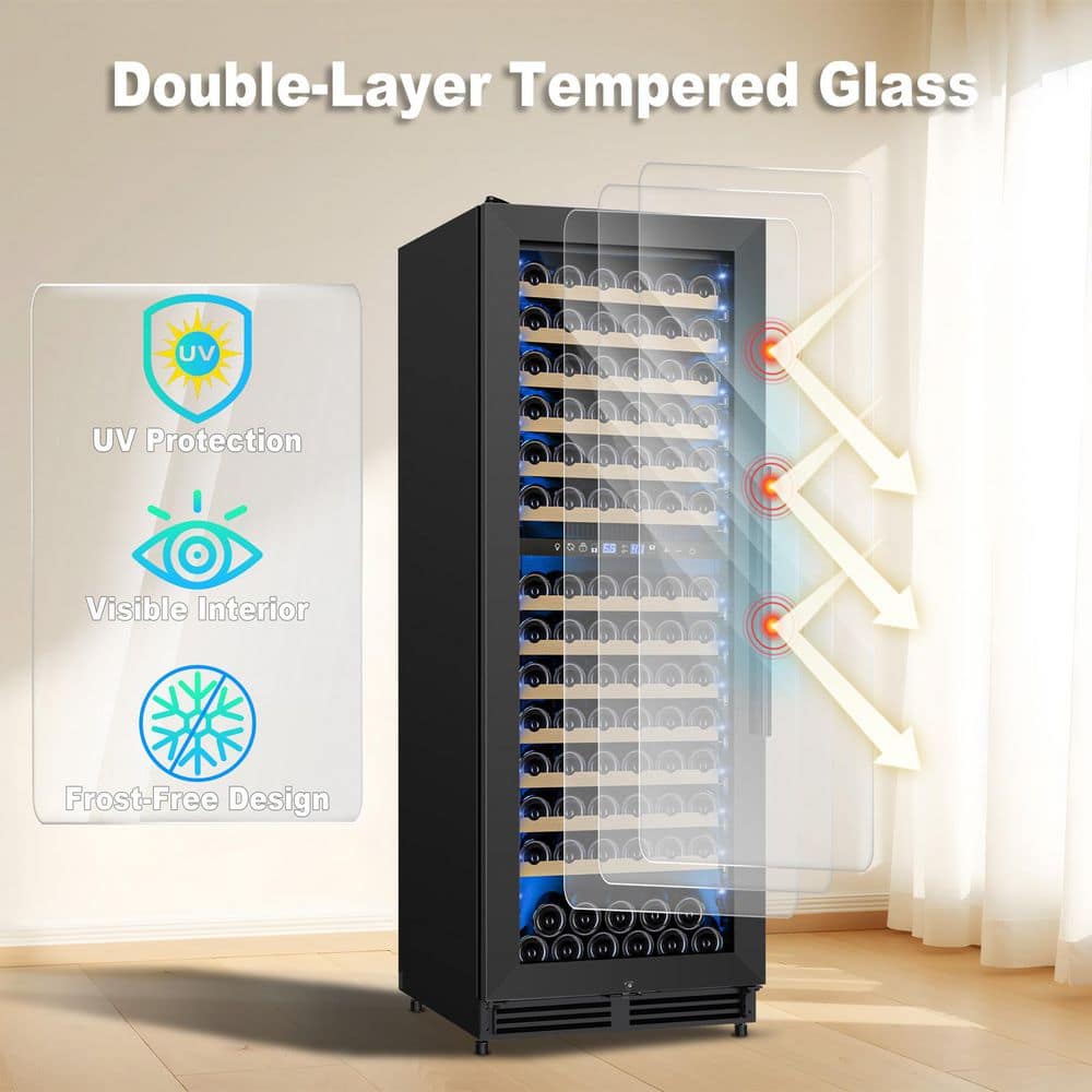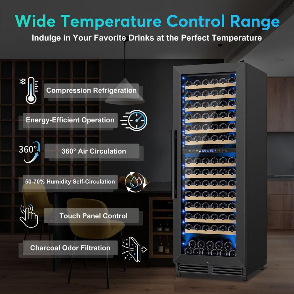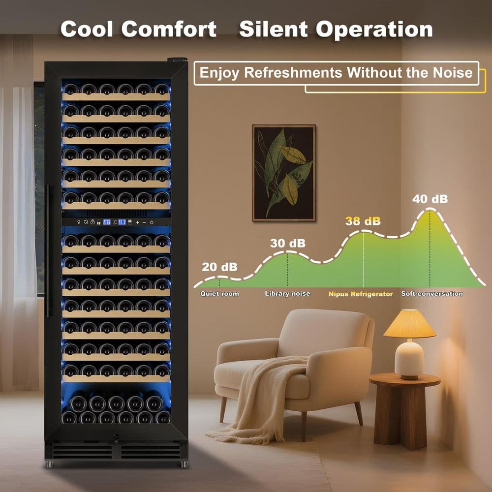 Elevate Your Wine Experience with the Nipus Wine Cooler!Indulge in the art of wine storage with the Nipus Wine Cooler, designed for true wine enthusiasts. With its sleek black stainless steel finish and spacious capacity for up to 154 bottles, this cooler is not just a storage solution-it's a statement piece.Enjoy the luxury of dual temperature zones, allowing you to perfectly chill your reds and whites at their optimal serving temperatures. The adjustable, removable shelves make it easy to accommodate bottles of all shapes and sizes, ensuring your collection is displayed beautifully.Whisper-quiet operation at just 38 dB means you can enjoy your space without any distractions. Plus, with user-friendly controls and a stylish glass door that protects against UV rays, your wine is not only safe but showcased elegantly.Whether you're hosting a gathering or simply savoring a quiet evening, the Nipus Wine Cooler is your ultimate companion for every occasion. Elevate your wine experience today-because every bottle deserves the best!