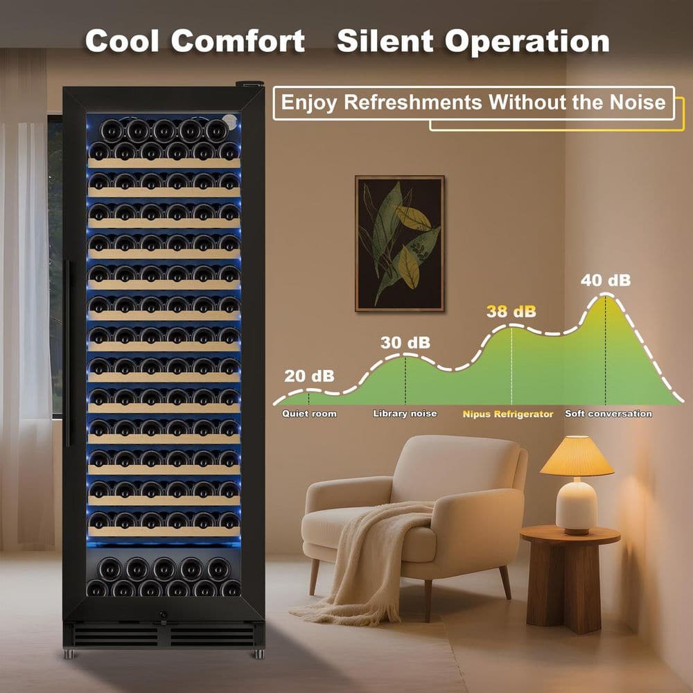 Nipus 24 in. Single Zone Wine Cellar Cooling Unit 173 Plus Bottles Built in Wine Cooler 2-Door Handles Blue LEDs in Black