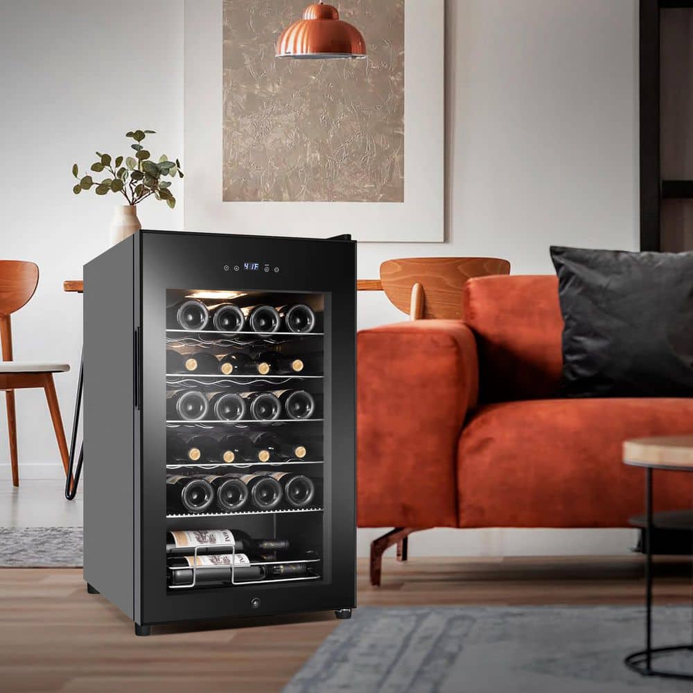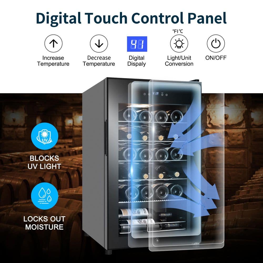 SOZT 16.92 in. Single Zone 24-Bottle Wine Cooler With LCD Touch Control, Wine Cellar Cooling Unit in Black