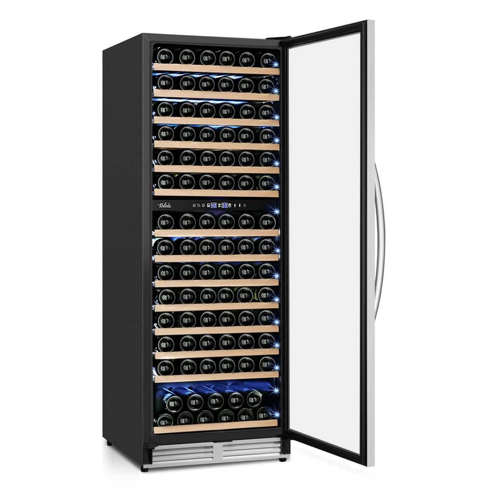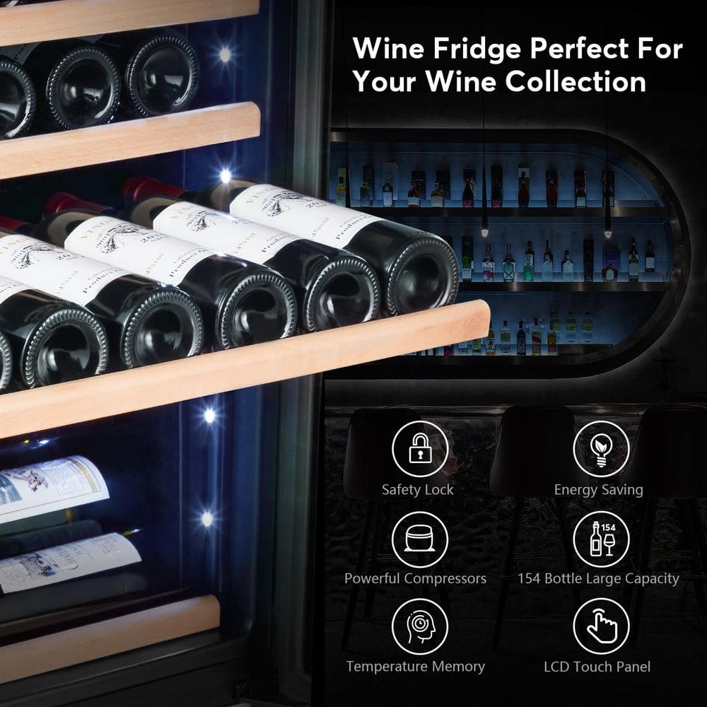 SOZT 23.54 in. Dual Zone Cellar Cooling 154-Bottles Wine Cooler Refrigerator with Safety Lock in Stainless Steel