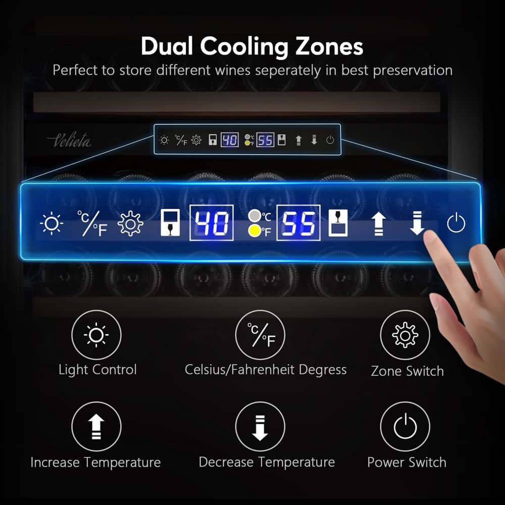 - Dual-zone storage for up to 180 bottles