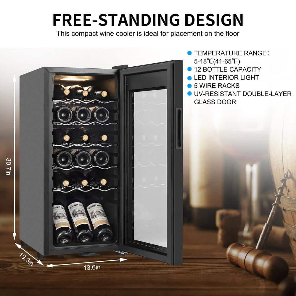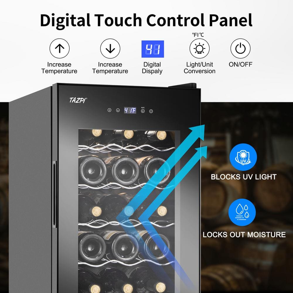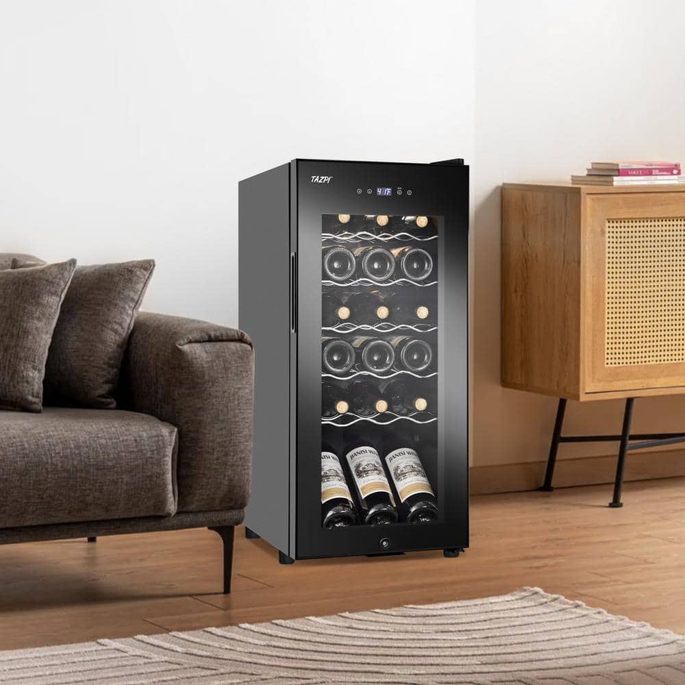 TAZPI 13.6 in. Wine Cooler 18 Bottle Freestanding Wine Refrigerator with Door Lock, Black
