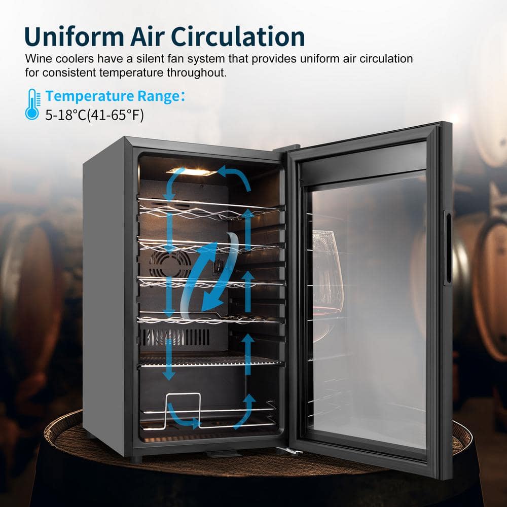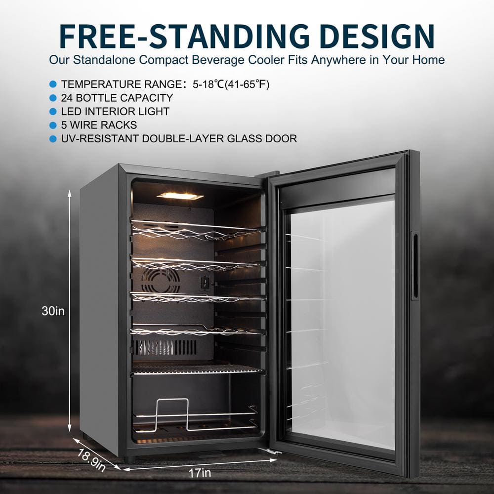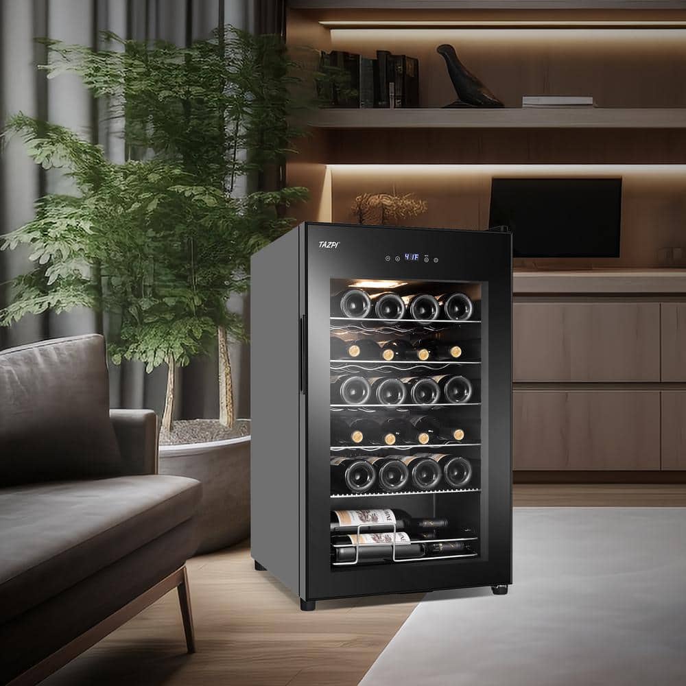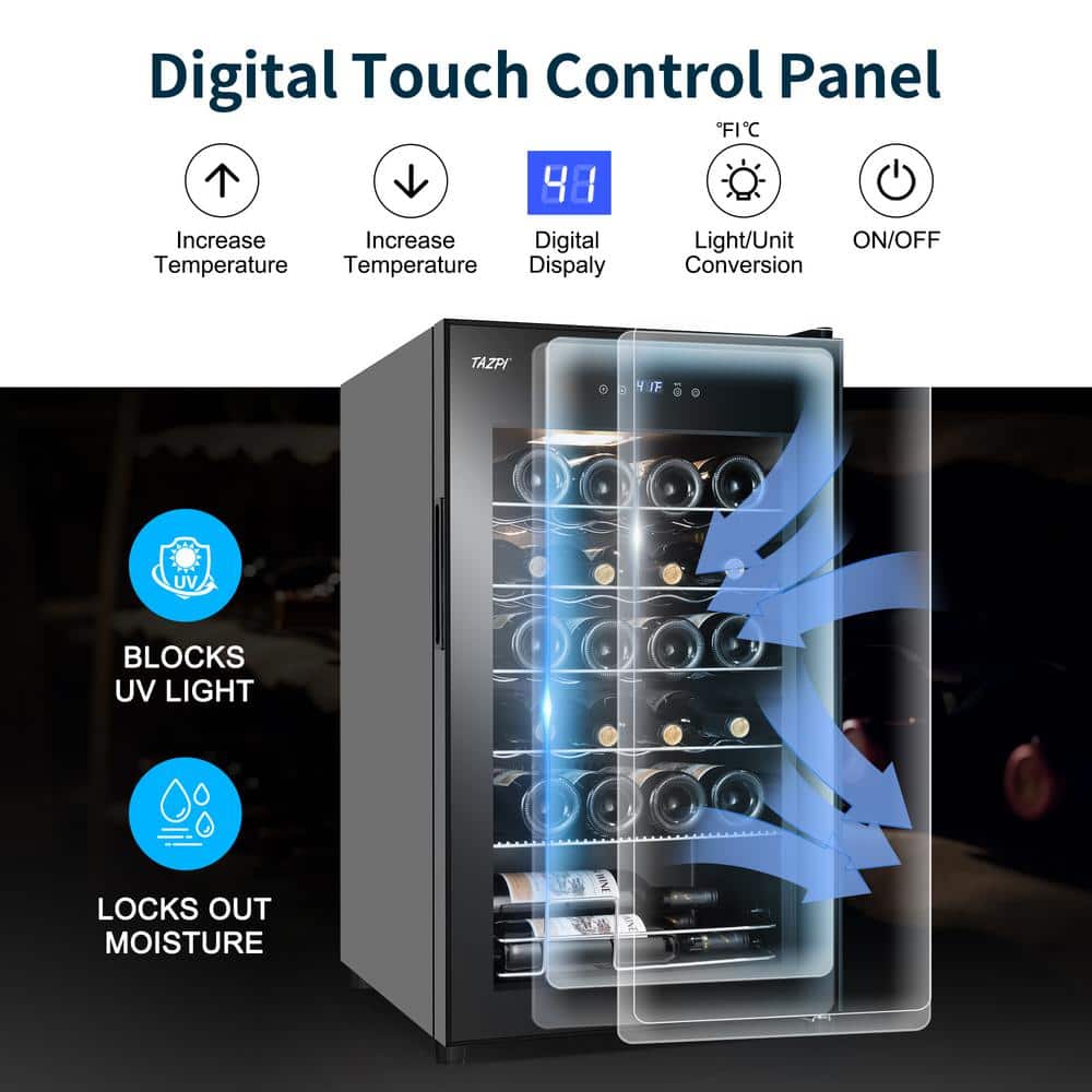 TAZPI 17 in. Wine Cooler 24 Bottle Freestanding Wine Refrigerator with Door Lock, Black