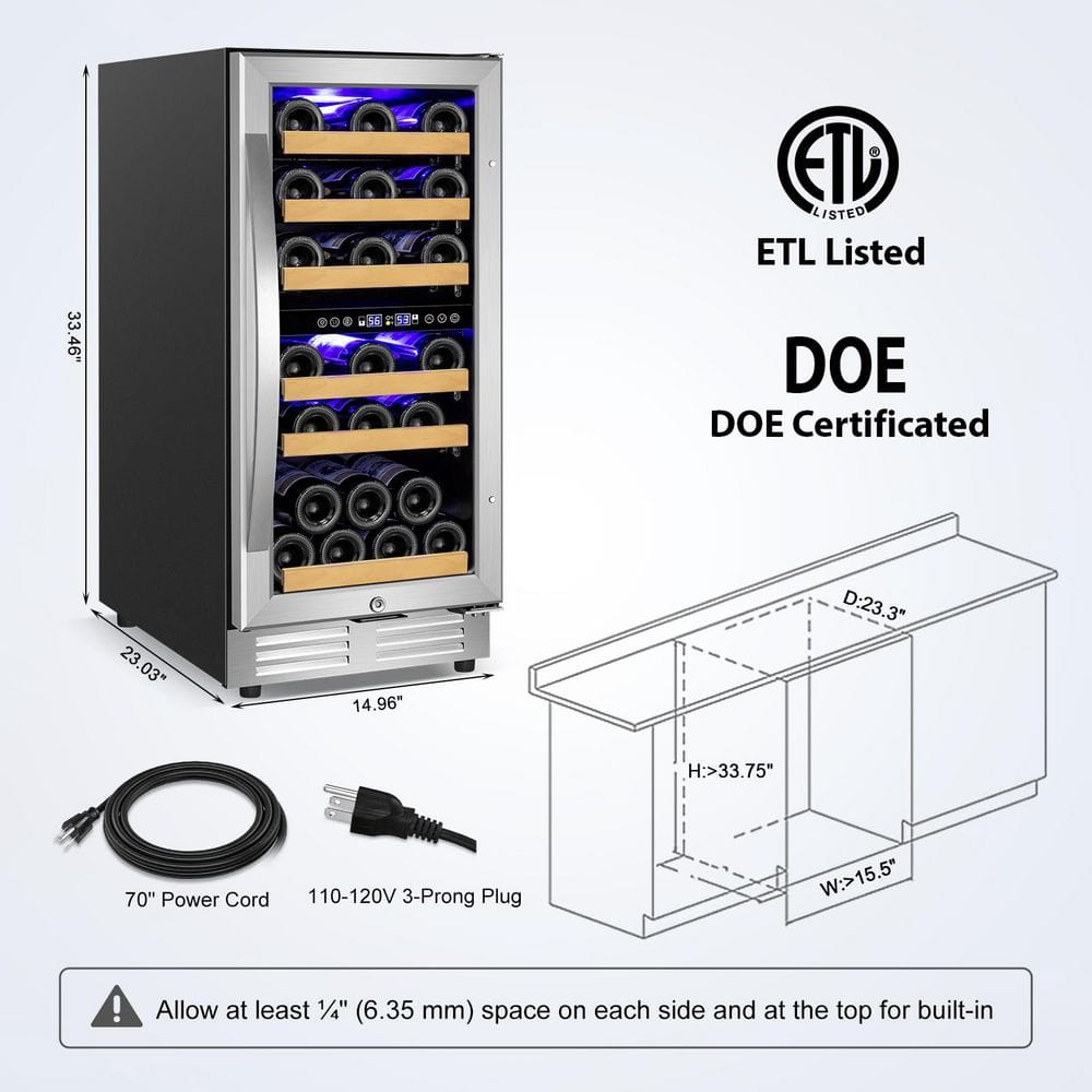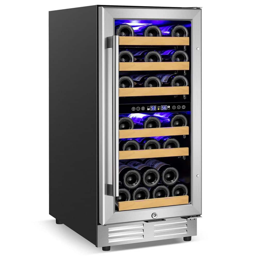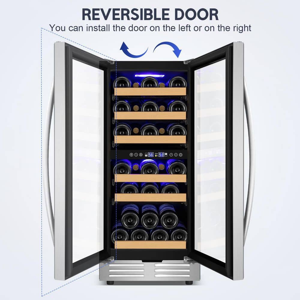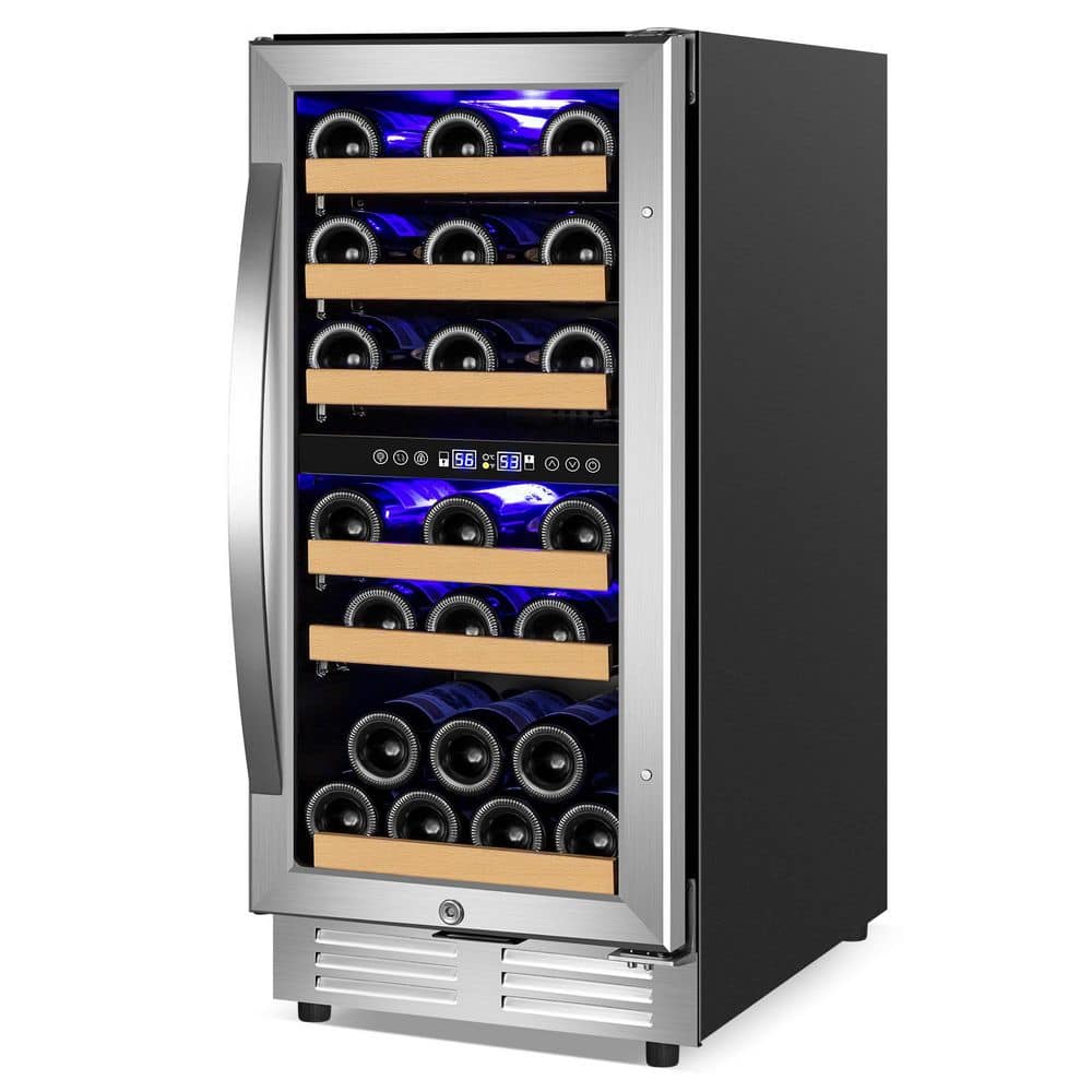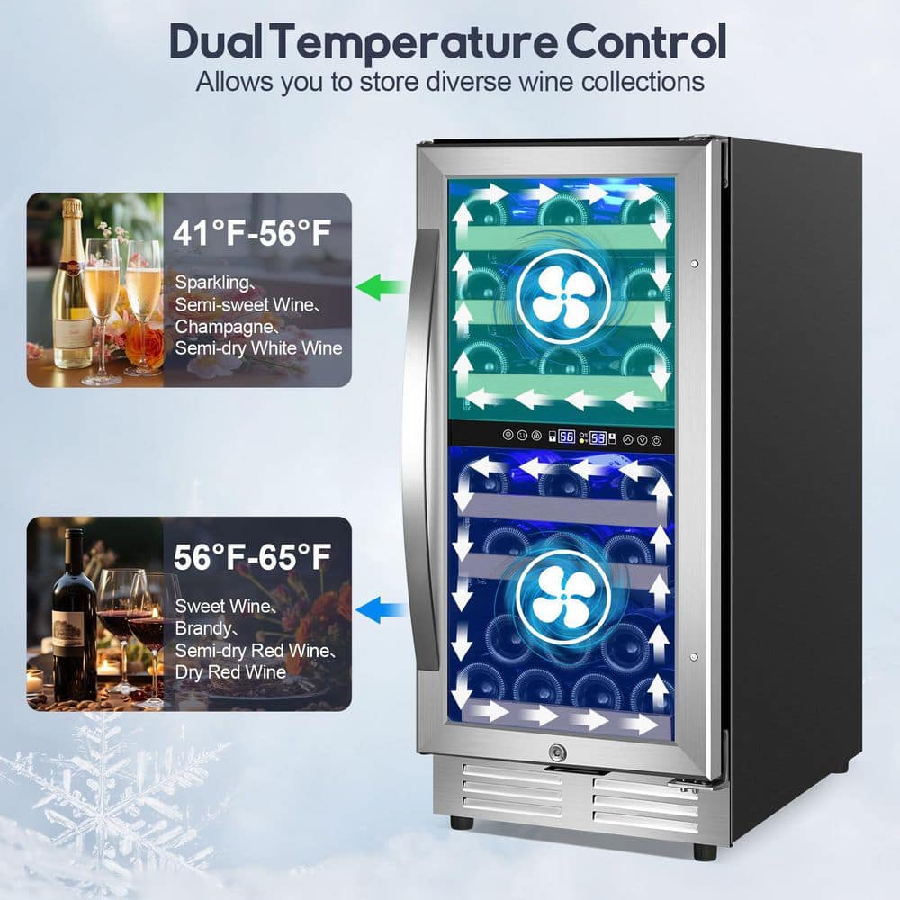 TITTLA 15" Dual Zone 30-Bottle Cellar Cooling Unit Built- in Freestanding Compressor Wine Cooler with 2 handles-Stainless Steel