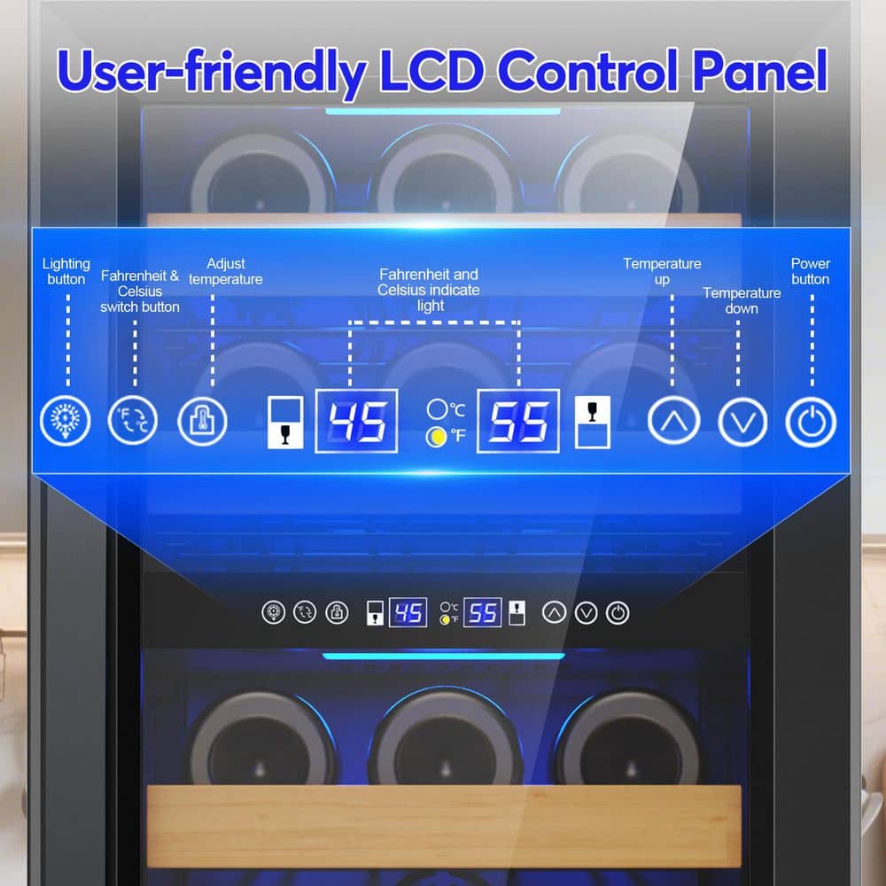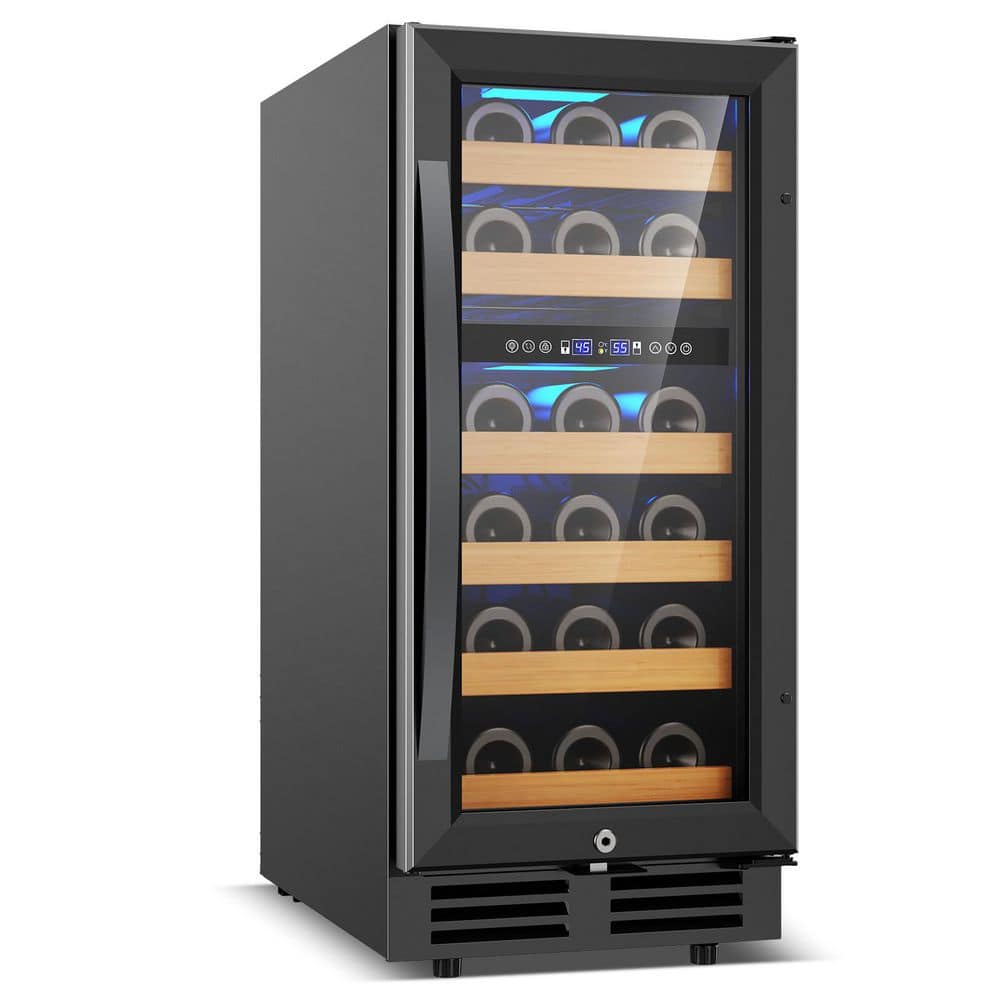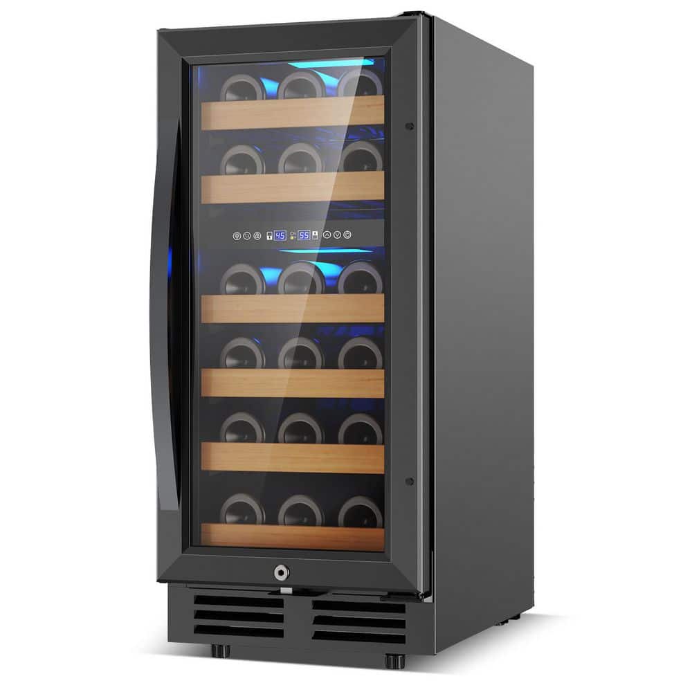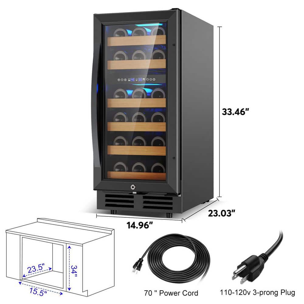 Elevate your wine collection with this stylish 15 in. dual-zone wine cooler. Designed to hold up to 30 bottles, this sleek black unit combines functionality with elegance. The dual-zone temperature control ensures your wines are stored at the perfect conditions, allowing you to enjoy them at their best. With its modern design and convenient built-in features, this wine cooler is the ideal addition to any home bar or kitchen, making it easy to showcase and preserve your favorite vintages.