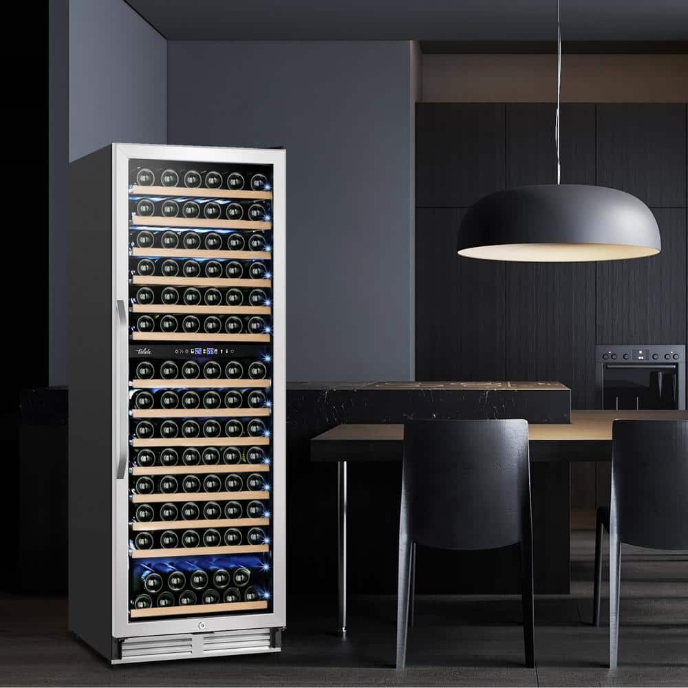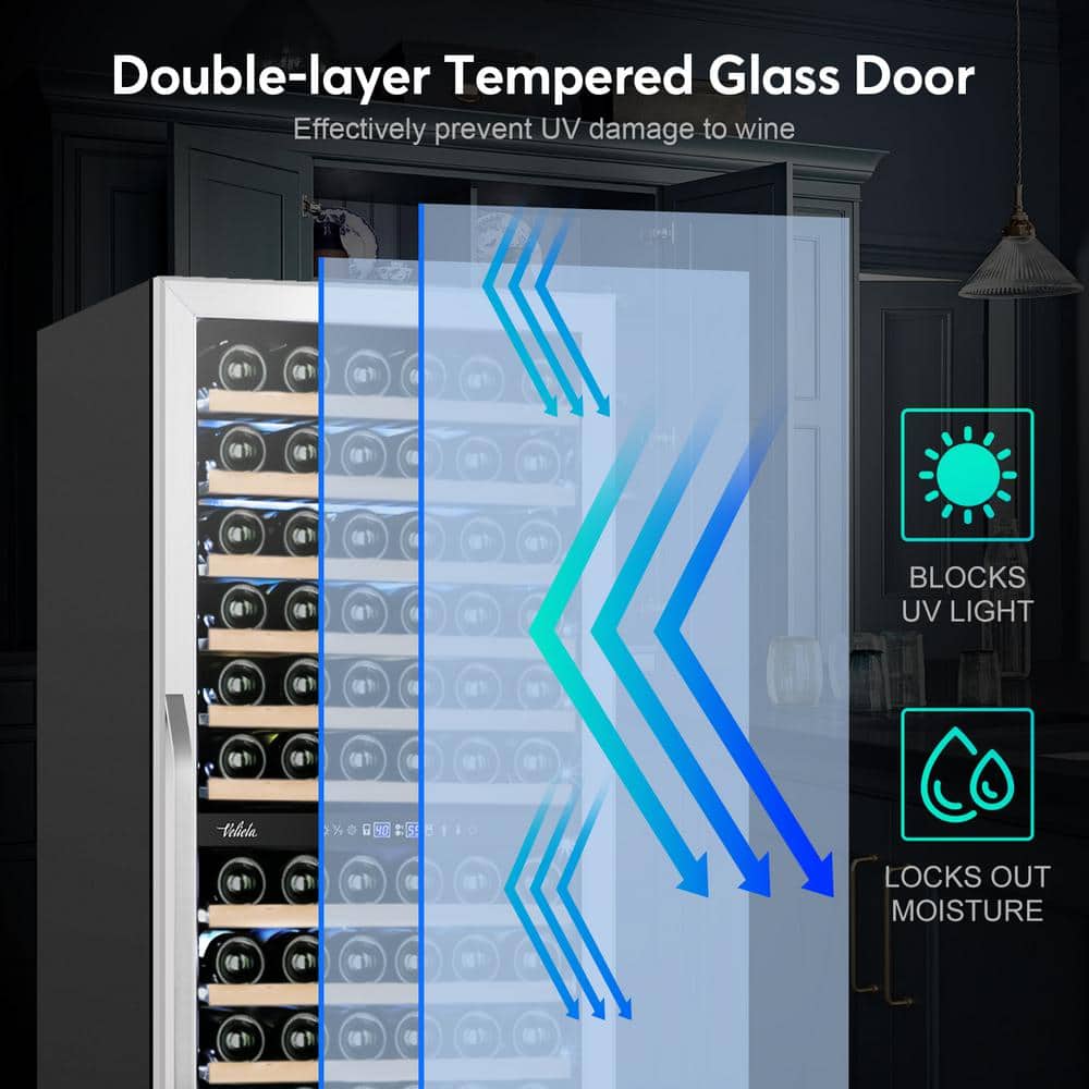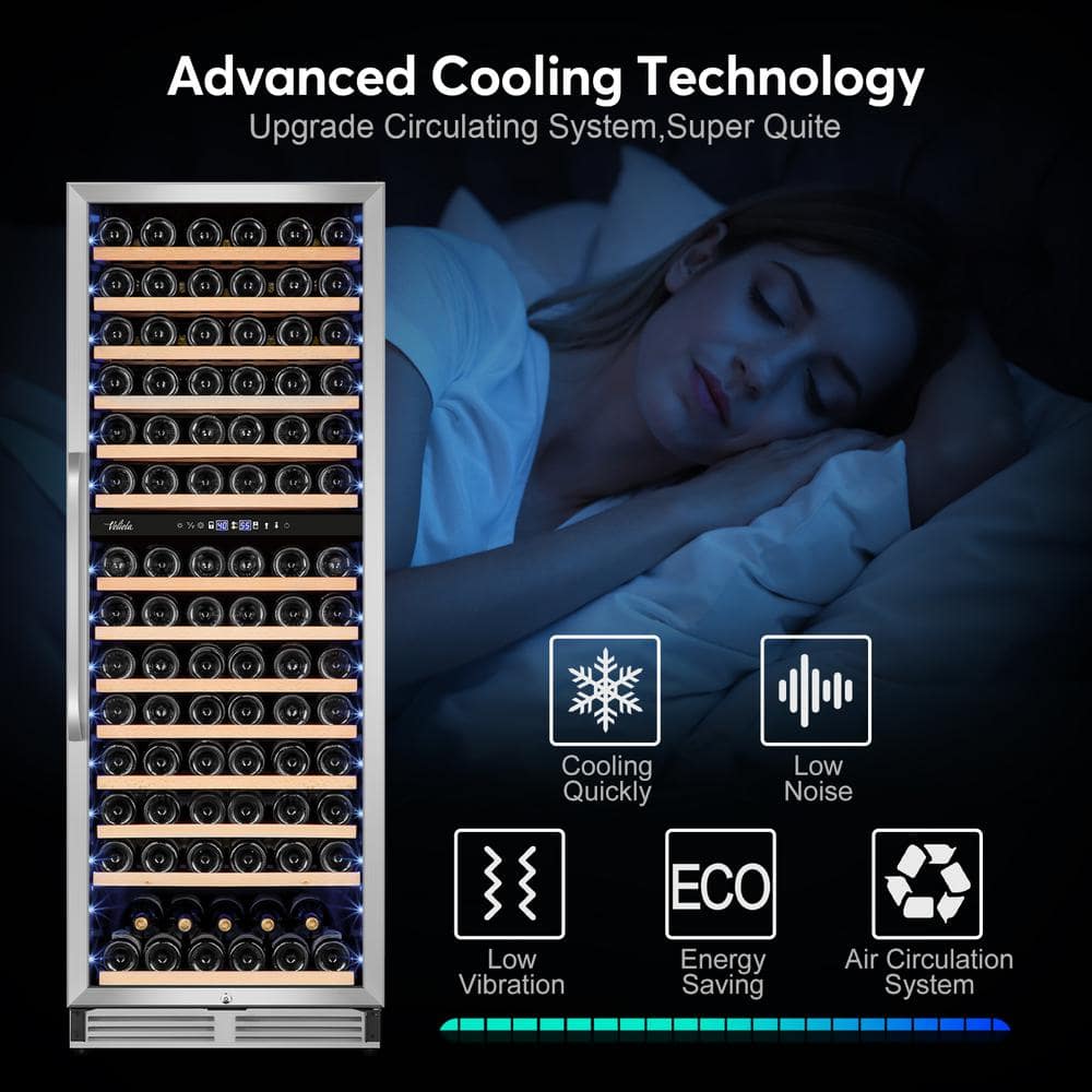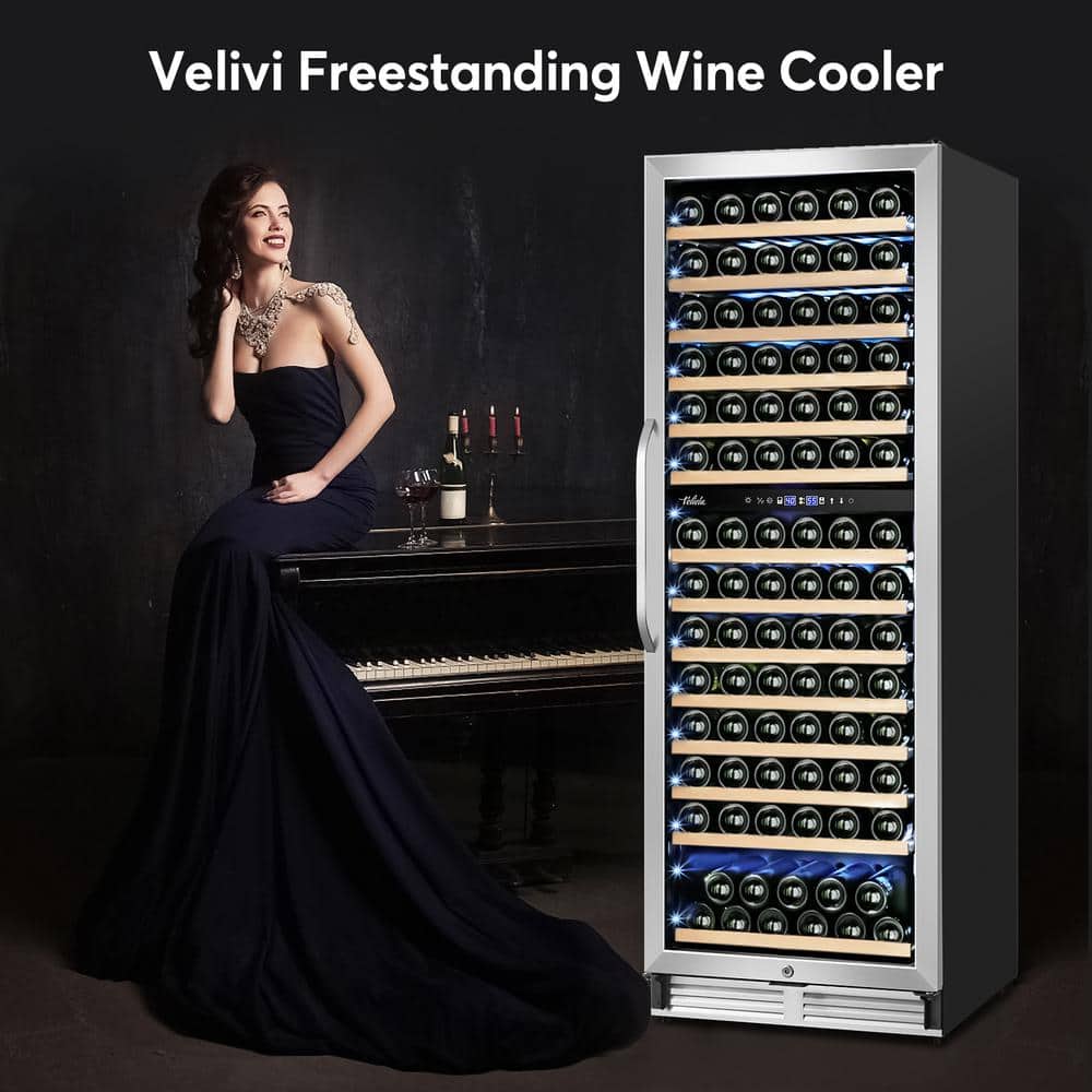 Velivi Cellar Cooling Unit 24 in . Dual Zone 154-Bottle Built-In or Freestanding Wine Cooler with Door Lock, Stainless Steel