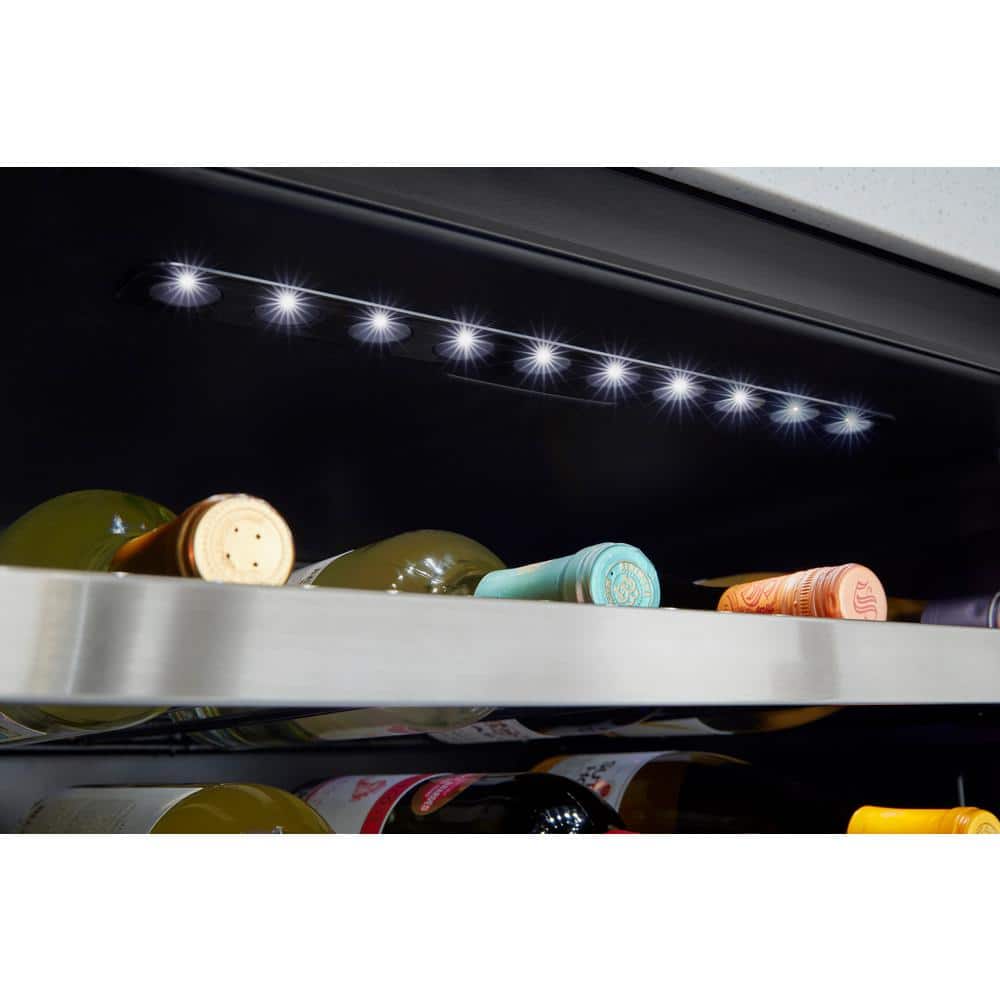 Stay organized with purposeful spaces for your wine. This wine center features a dual-temperature controlled zone so you can customize up to two different temperatures. The undercounter refrigerator hides smudges with fingerprint-resistant stainless steel. Plus, you can store up to 46 bottles of wine in this refrigerator with wine storage.