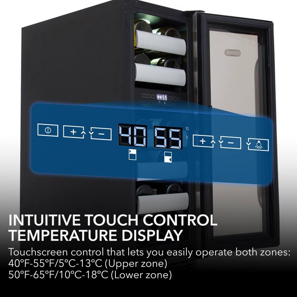 - Dual-zone cooling stores 6 bottles up top, 11 below
