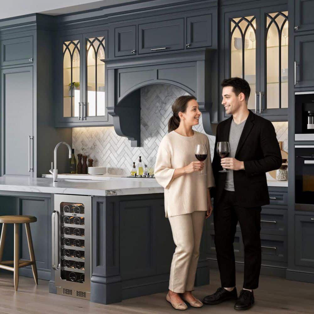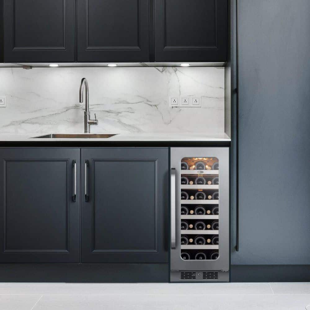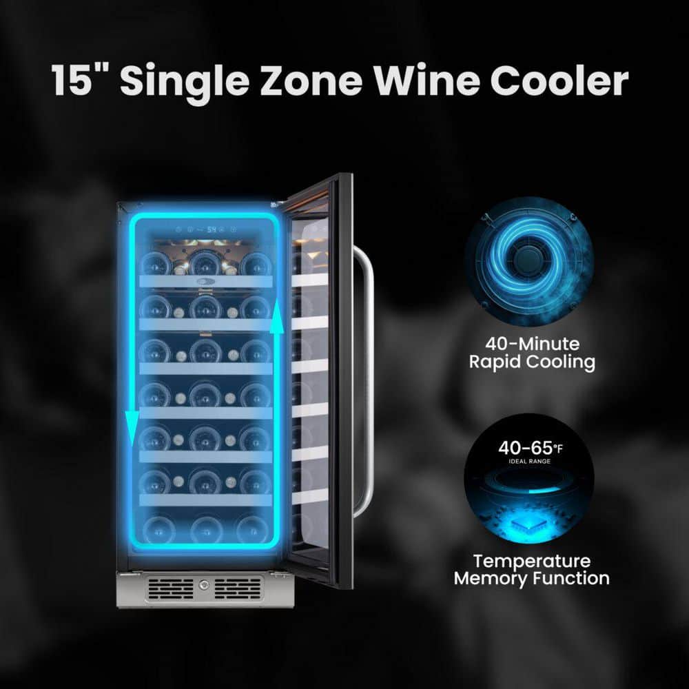 Whynter 15 in. 3.0 cu. ft. 33 Bottle Single Zone Undercounter Wine Cooler Fridge in Black Cabinet with Stainless Steel Door