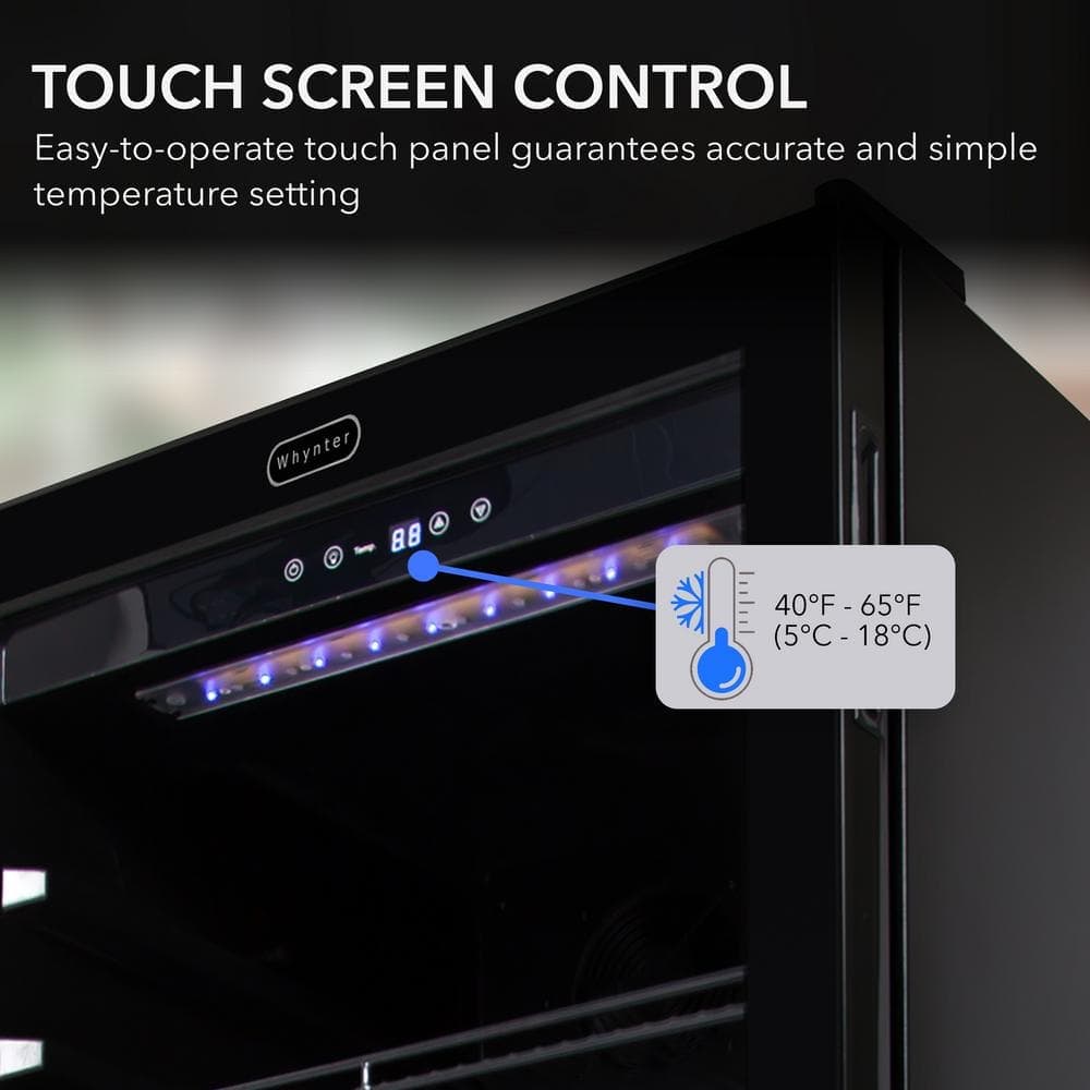 Whynter 24 in. 124 Bottle Wine Cooler Single Zone Fridge with Lock Freestanding Black Reversible Glass Door and Digital Control