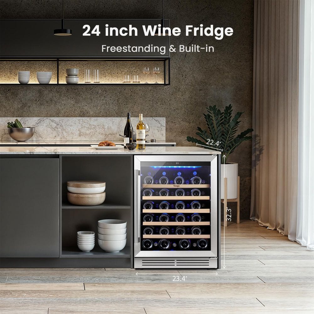 Yeego 24 in. Single Zone 52-Bottles Built-In/Freestanding Wine Cooler Refrigerator with 5 Removable Shelves Tempered Door