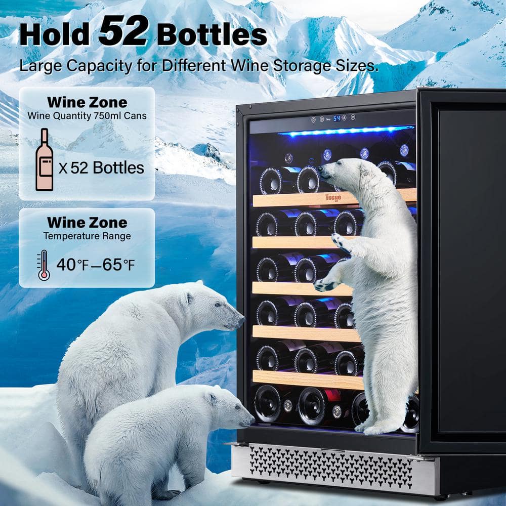 - Accommodates up to 52 standard wine bottles