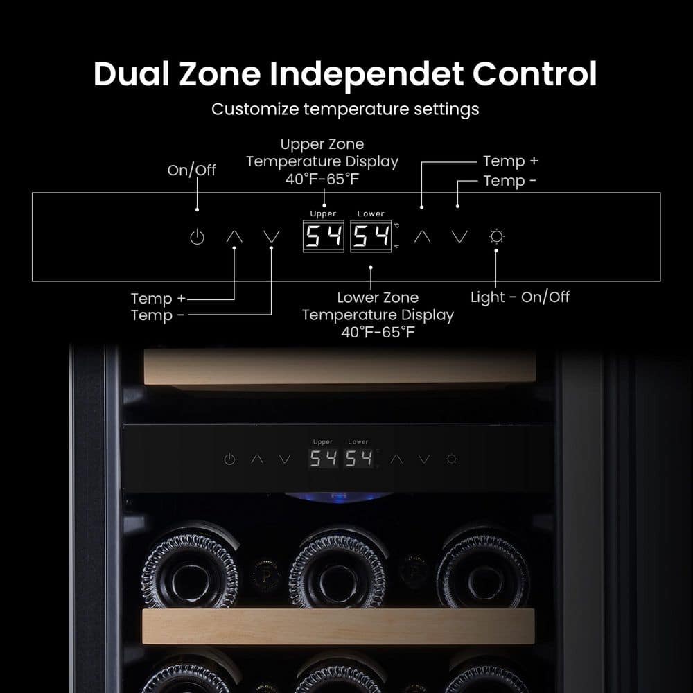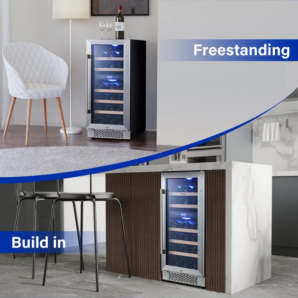 Yeego Dual Zone 15 in. 28-Bottles Built-In/Freestanding Wine Cooler Refrigerator 40-65°F Frost-Free with 5 Removable Shelves