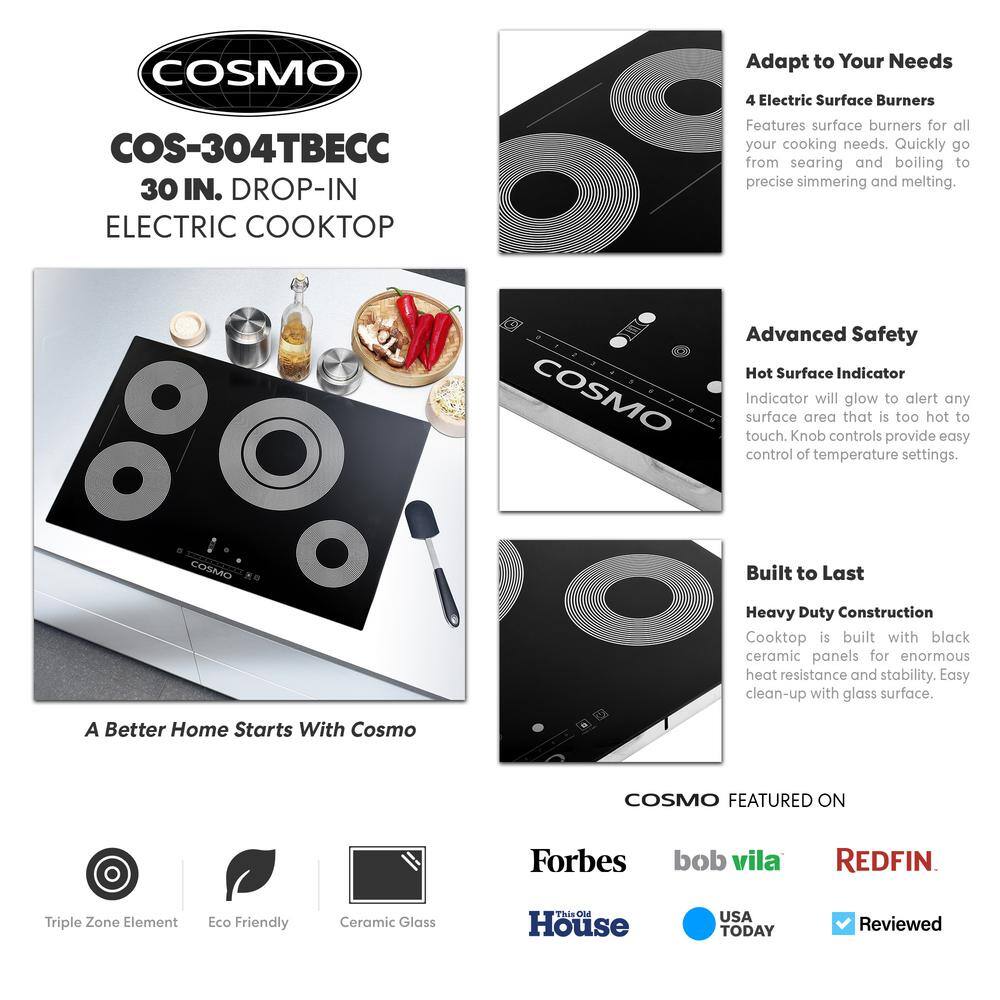 Cosmo 30 in. Electric Ceramic Glass Cooktop with 4 Elements, Triple Zone Element, Sync Burners in Black