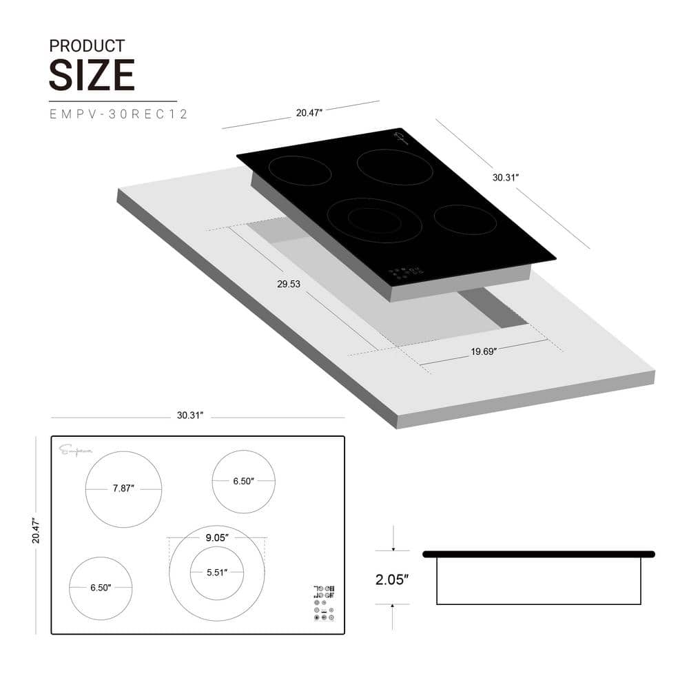 Empava 30 in. 240-Volt Smooth Surface Radiant Electric Cooktop in Black with 4 Elements including Dual Zone Element