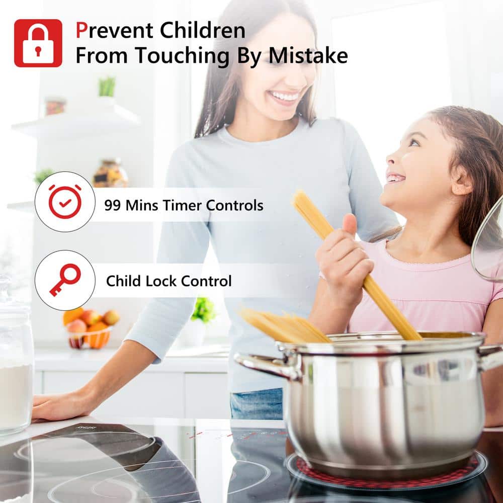 Our 30-inch electric ceramic cooktop combines powerful, even heating with intuitive touch controls and advanced safety features. Cook multiple dishes efficiently on five radiant elements, while the adjustable dual-ring burner fits your cookware perfectly. The sleek, easy-to-clean surface and quiet operation make everyday cooking effortless and enjoyable. Compatible with most pots and backed by safety certifications and a 3-year warranty, it's designed to bring convenience, safety, and confidence to your kitchen every day.