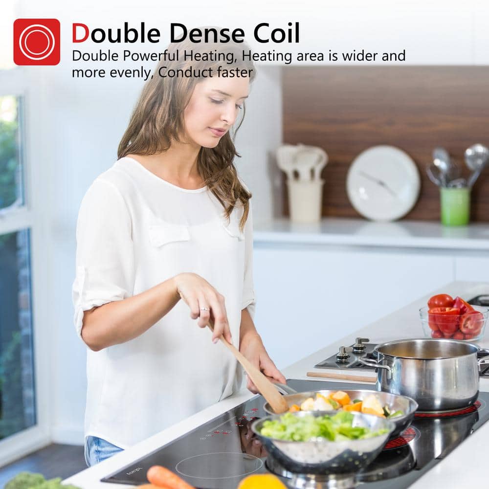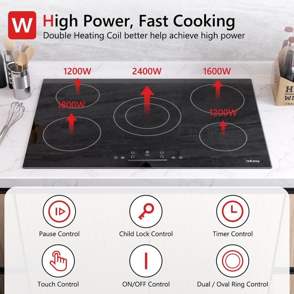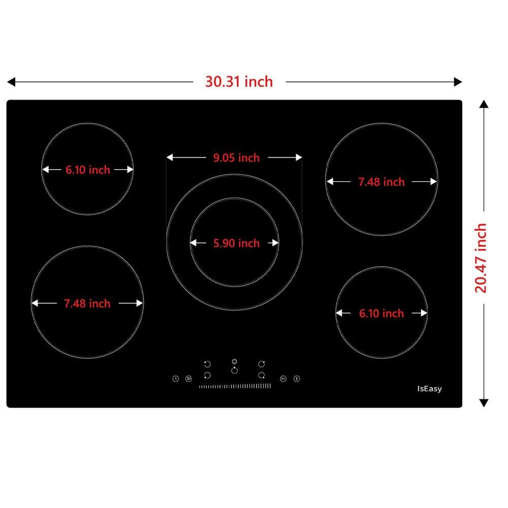 IsEasy 30 in. 5 Elements Ceramic Glass Surface Radiant Electric Cooktop in Black with Dual Element and Touch Control