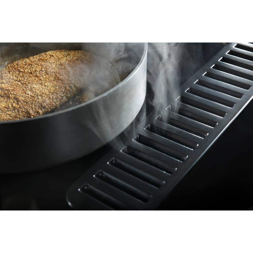 This 30" electric cooktop features Downdraft, an integrated ventilation system that doesn't require a separate hood. A 10-inch Even-Heat Ultra element provides versatility for both high- and low-temperature cooking, and has multiple simmer settings. And with a 3-speed fan with 300 CFM exhaust rating, the venting can keep up with your culinary feats.