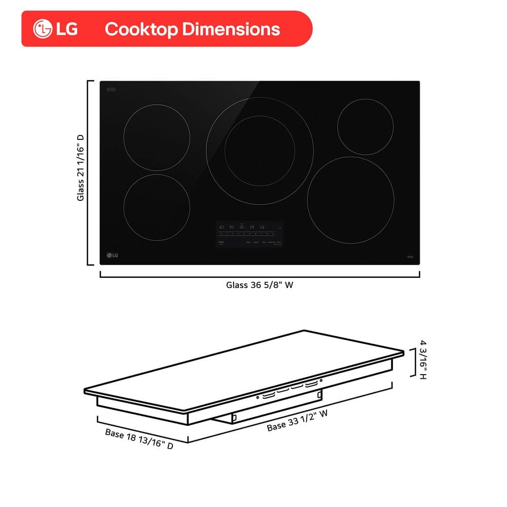 LG 36 in. 5 elements Radiant Electric Cooktop in Black with ThinQ, 3.0 kW, E-Star