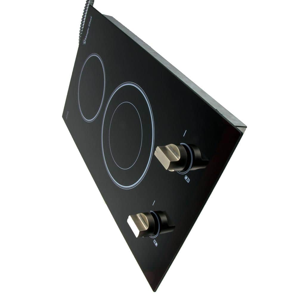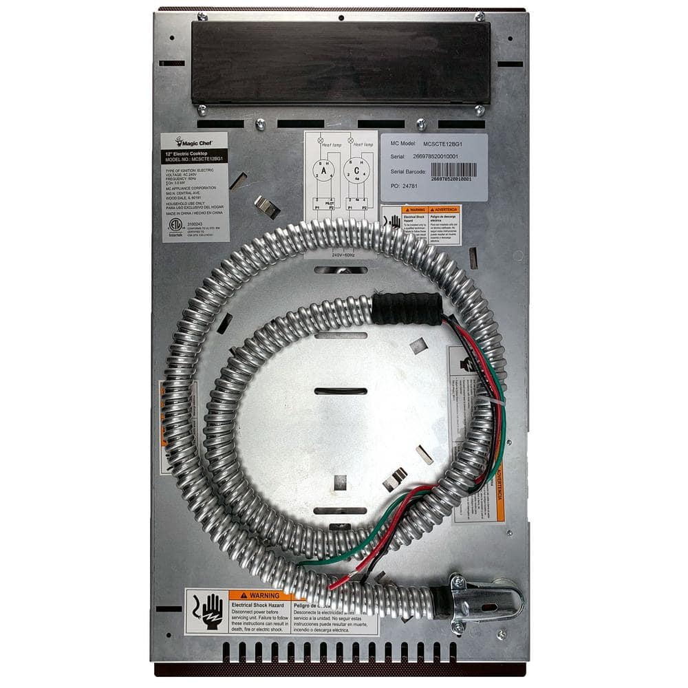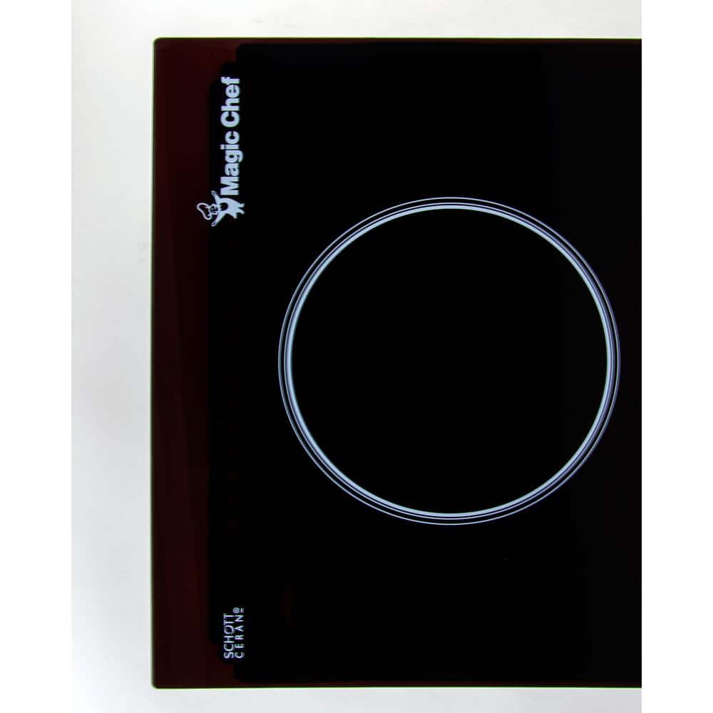 The Magic Chef 12 in. wide, 240-Volt electric cooktop offers sleek, modern lines and many of the features found in larger appliances. This gives the consumer maximum functionality in minimal spaces. 2-radiant elements, including a dual element, provide excellent heat control and can accommodate many sizes of cookware. Its sleek SCHOTT Ceran black ceramic glass surface provides durability and easy cleanup.