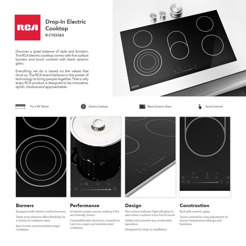 - RCA R-CTES365 36 in. drop-in electric ceramic glass cooktop