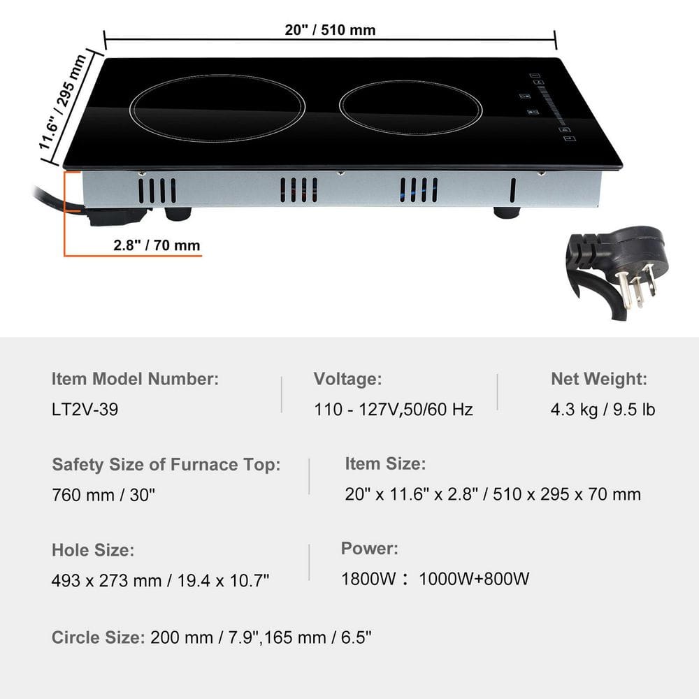 VEVOR Portable Induction Cooktop, 1800 W Electric Induction Burner with 9-Temperature Settings, Countertop Induction Hot Plate