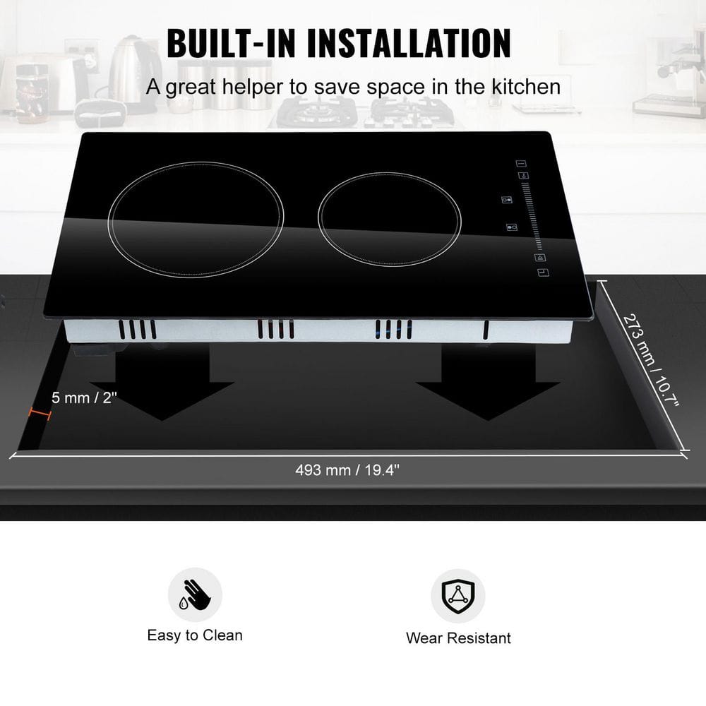 SKYSHALO Built in Electric Stove Top 12in. 2 Burners Glass Radiant Cooktop with Sensor Touch Control Power Level Radiant