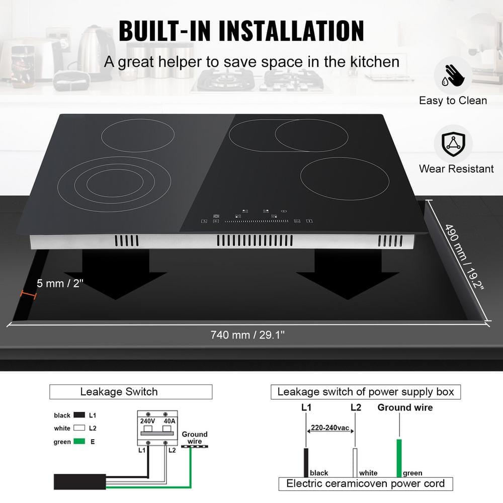 SKYSHALO Electric Stove Top 30 in. Black Elements 4-Burners Electric Cooktop 9-Power Levels and Sensor Touch Control