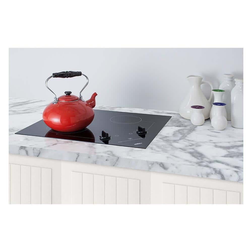 Summit offers a quality lineup of electric cooktops designed to suit any residential or hotel kitchen setup.The CR2B223G is a 230-Volt radiant cooktop made with EuroKera ceramic black glass. The smooth surface ensures easy cleanup with a sleek, modern look. This unit is designed to fit many common counter cutouts sized 20 in. x 16 in. The burners and knobs are specially laid out so that they are easy and intuitive to use when the unit is installed in a landscape or portrait configuration. This unit features a large 7 in. 1800W burner and a 5-1/2 in. 1200W burner, letting you accommodate a variety of sizes. Additional safety features include indicator lights, a residual heat indicator and color-matched push-to-turn knobs.With its innovative design and quality construction, the CR2B223G is a great choice for homes, hotels, yachts and other settings with unique kitchen needs.