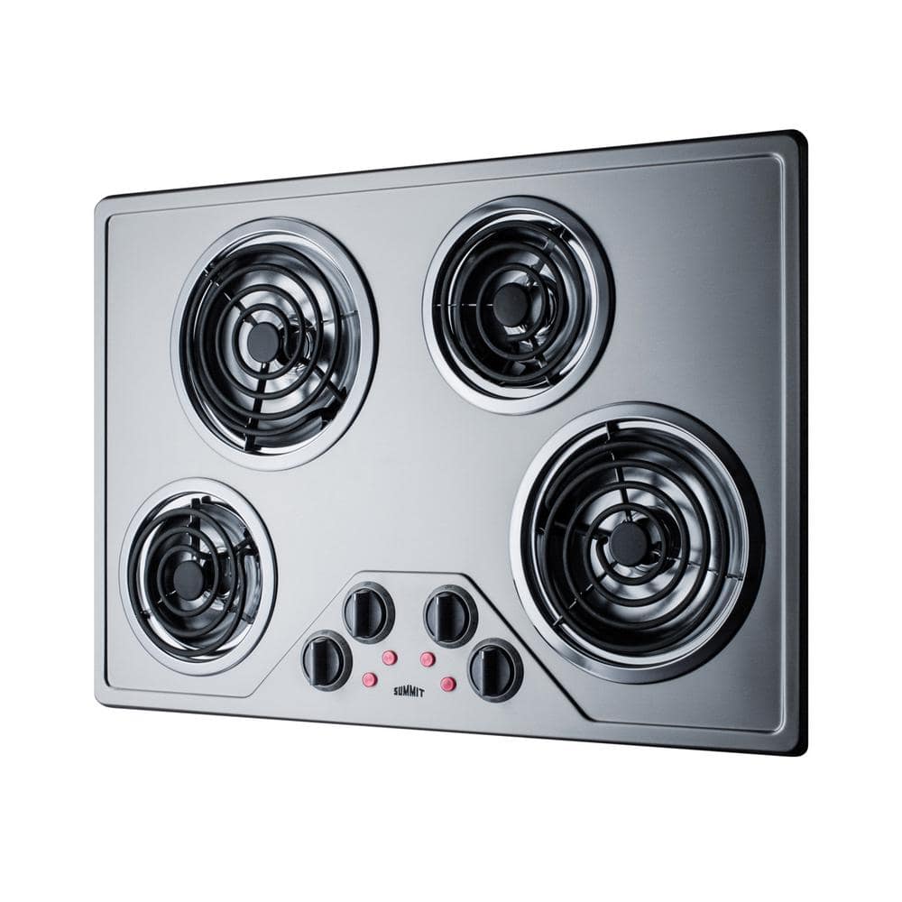 Summit Appliance 29.38 in. Coil Top Electric Cooktop in Stainless Steel with 4 Elements