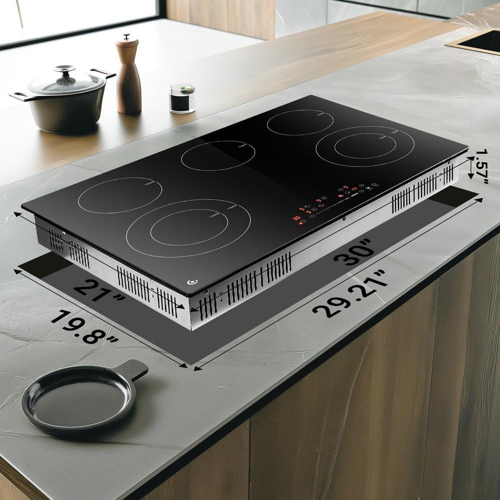 Introducing the am chef 30 in. Electric Cooktop with 5-burners, boasting a powerful-8400-Watt output. This sleek and efficient cooktop is designed to meet all your cooking needs, from simmering delicate sauces to boiling water in a flash. With its 16-heating levels, you're in control of the fire, making every meal a culinary masterpiece.