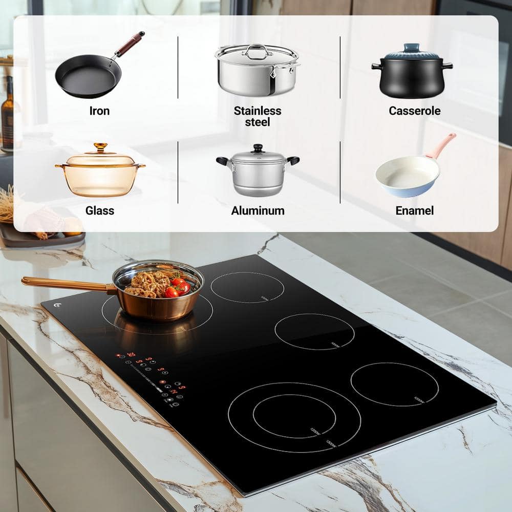 Sunmaki 30 in. 5 Elements Electric Cooktop in Black With 4 Burners, 9 Heating Level, Timer and Safety Lock, Sensor Touch Control