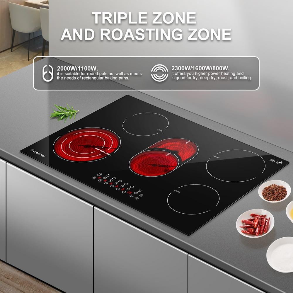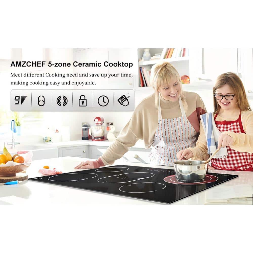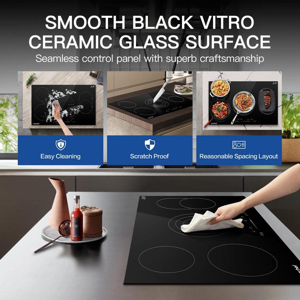Sunmaki 30 in. 5 Elements Ceramic Electric Cooktop in Black with 16 Heating Level (240-Volt/8400-Watt)