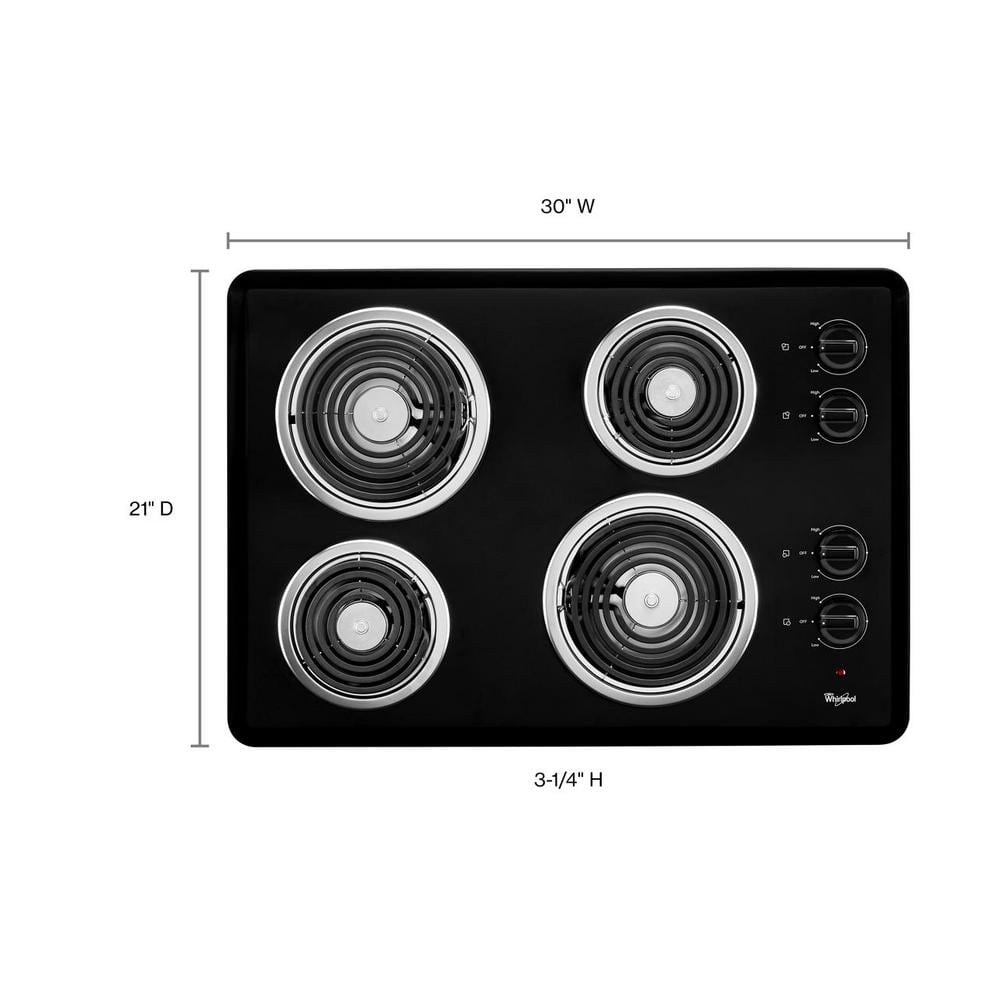 Whirlpool 30 in. Coil Electric Cooktop in Black with 4 Burner Elements