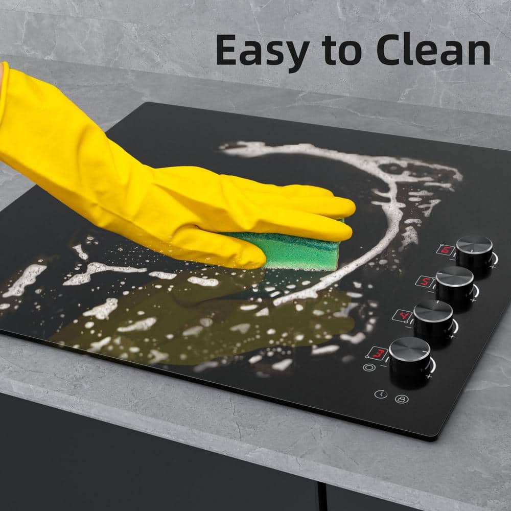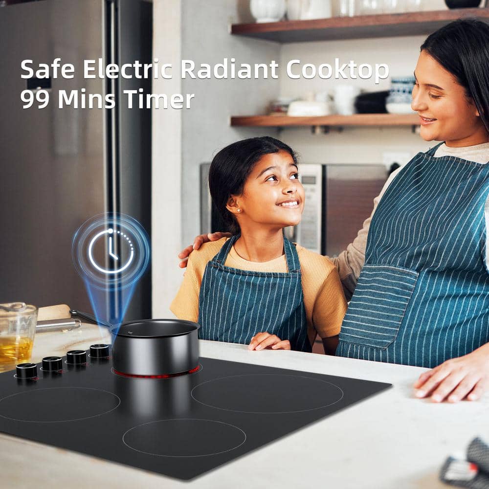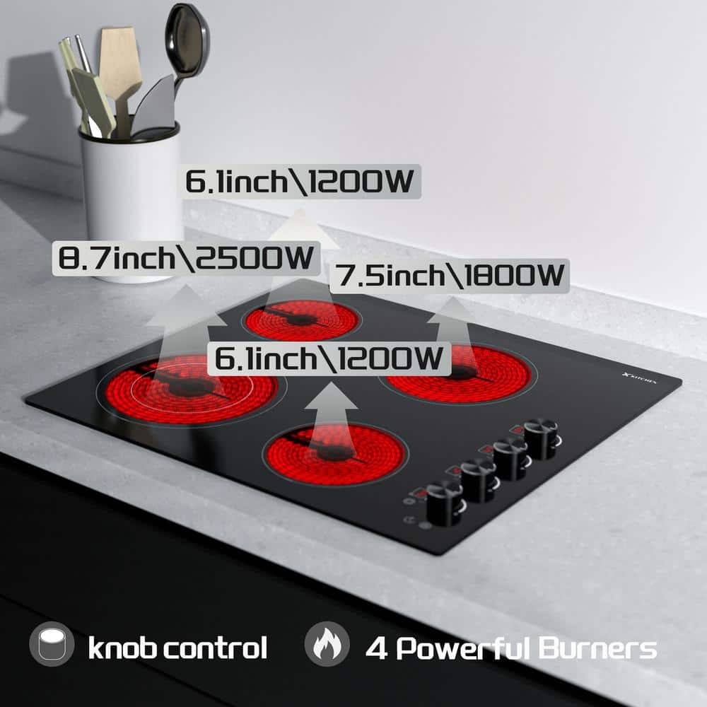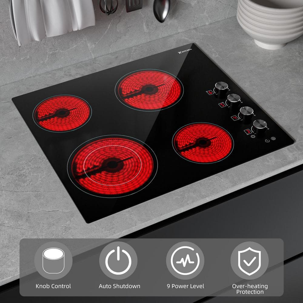 X KITCHEN 24 in. 4-Elements Ceramic Glass Surface Radiant Electric Cooktop in Black with Dual Element
