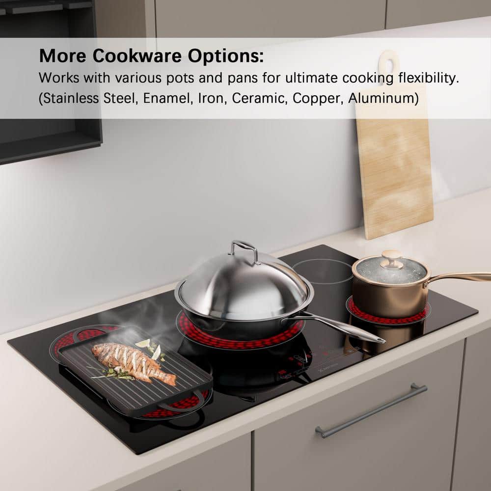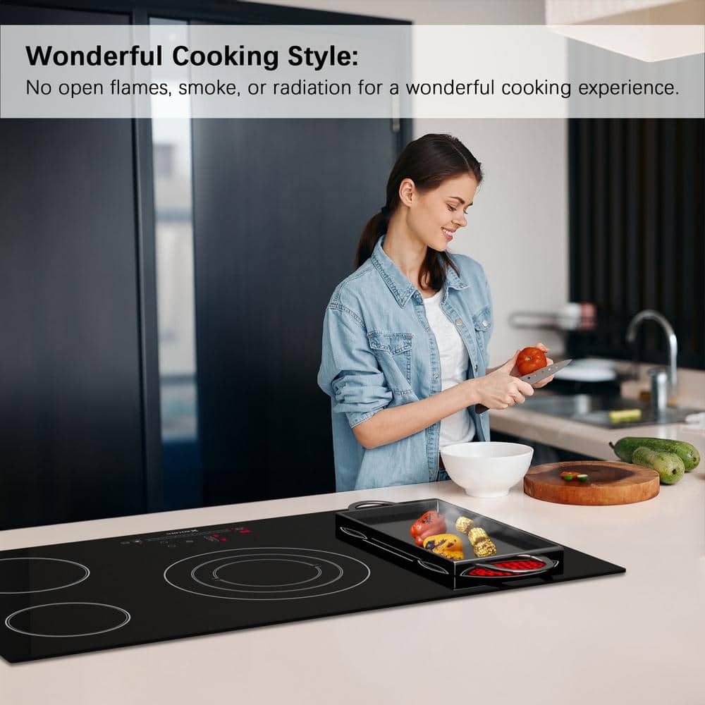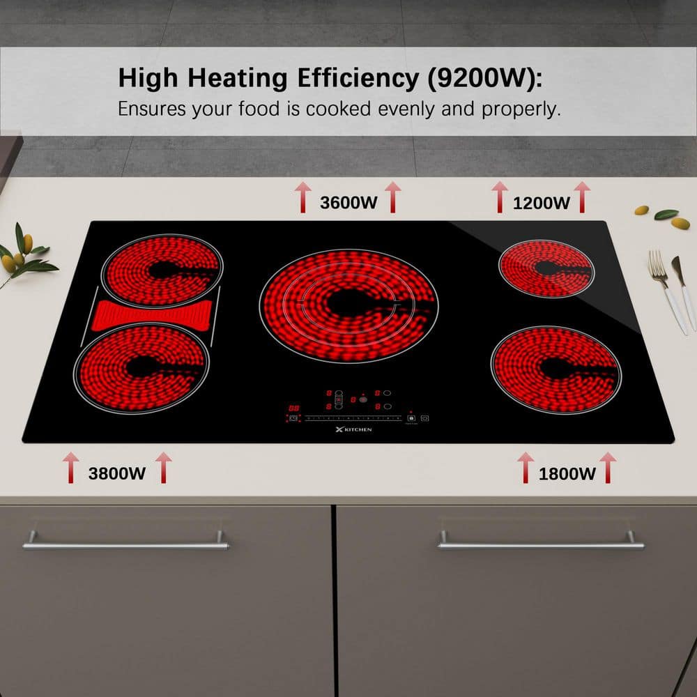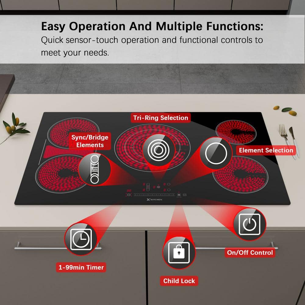 X KITCHEN 36 in. 5 Burners Radiant Electric Cooktop in Black with Tri-Ring Element, Bridge Element and ETL/FCC Certified