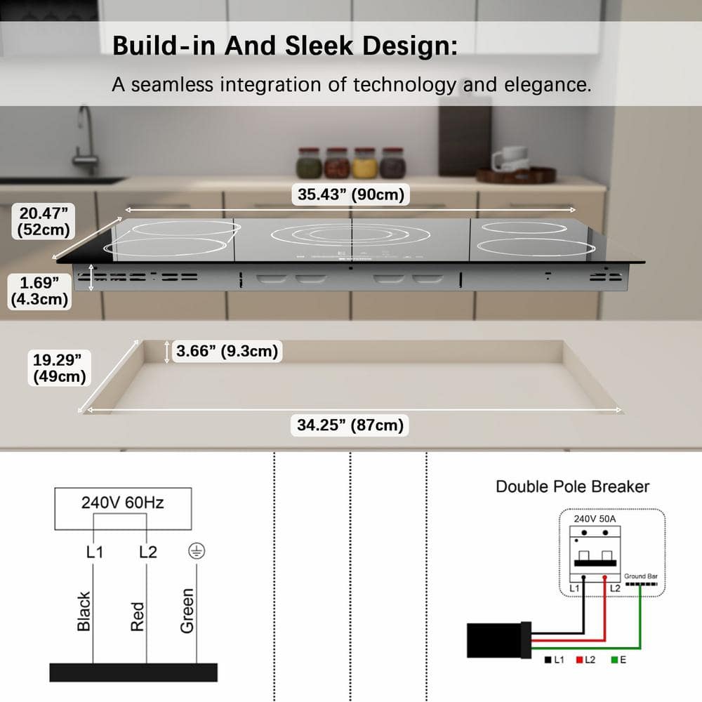 Our 5-burner cooktop makes cooking faster, safer, and more enjoyable. With versatile burners and a bridge element, you can easily prepare everything from delicate sauces to large pans or griddles. Precise touch controls with multiple power levels and a Melt setting give you perfect results every time, while child lock, automatic shut-off, hot surface warnings, and a timer keep your kitchen safe and stress-free. Compatible with a wide range of cookware and featuring a smooth, easy-to-clean glass surface, this ETL-certified cooktop brings convenience, reliability, and peace of mind to every meal!